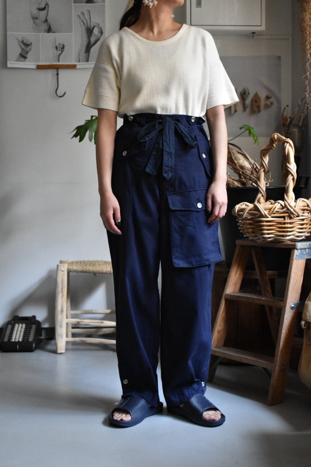 【size 2】ウエスト 43cm×2 (紐で絞れます) 股上36cm、股下70cm、ヒップ54㎝、ワタリ33㎝、裾幅19cm、総丈100㎝