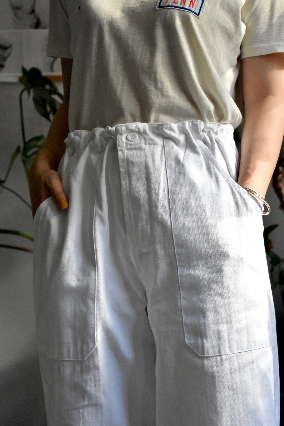 ウエスト 52cm×2 (紐で絞れます) 股上35cm、股下78.5cm、ヒップ56㎝×2、ワタリ34㎝、裾幅23.5cm、総丈106cm