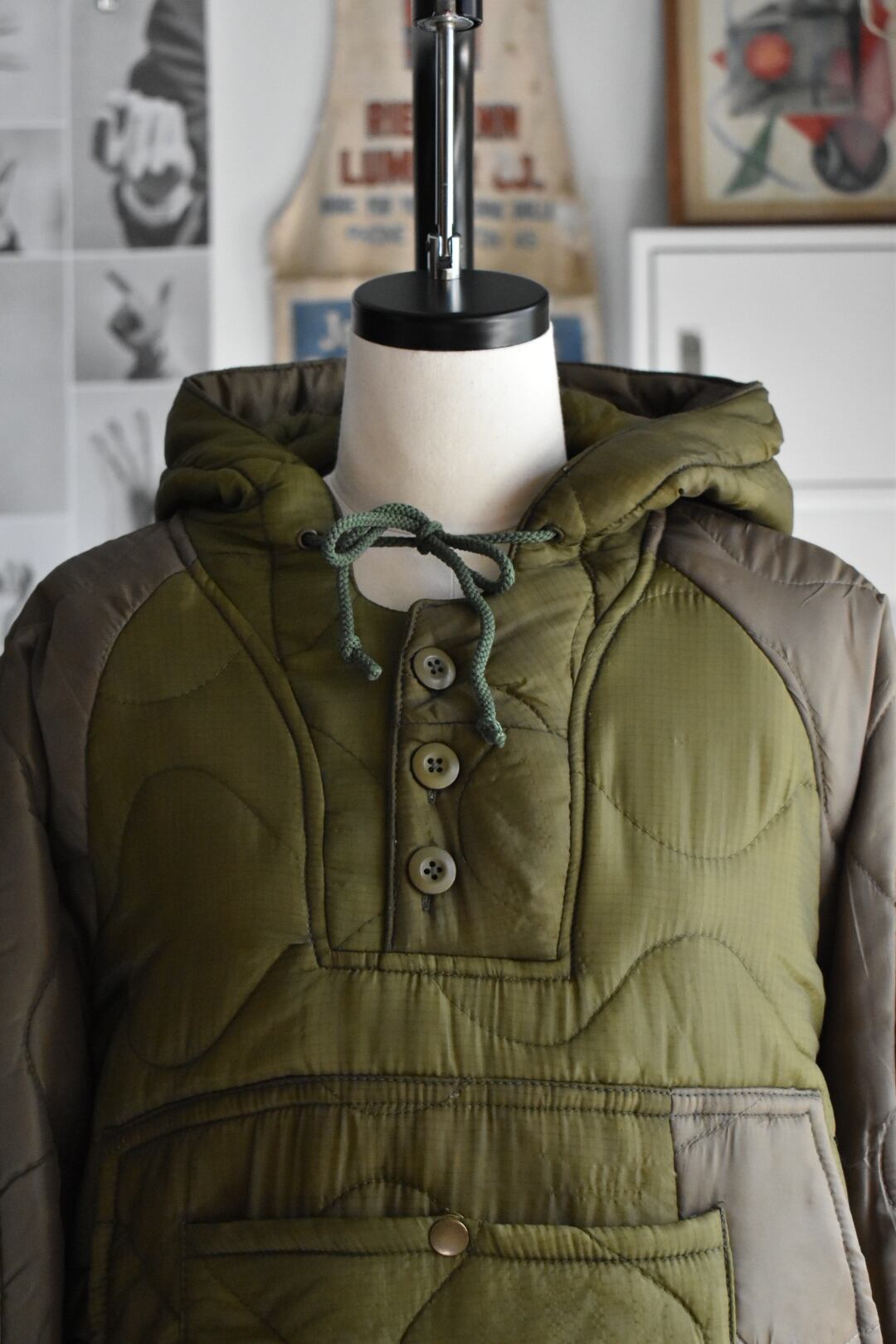 米軍のUSEDのキルティングライナーを贅沢に使用し、再構築されたアノラックパーカとなります。