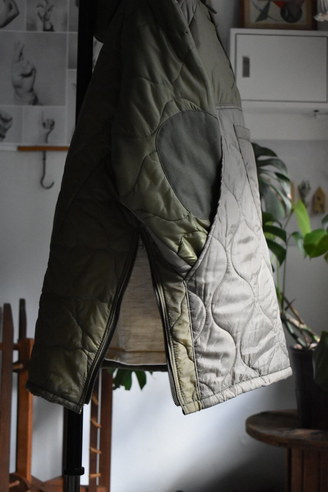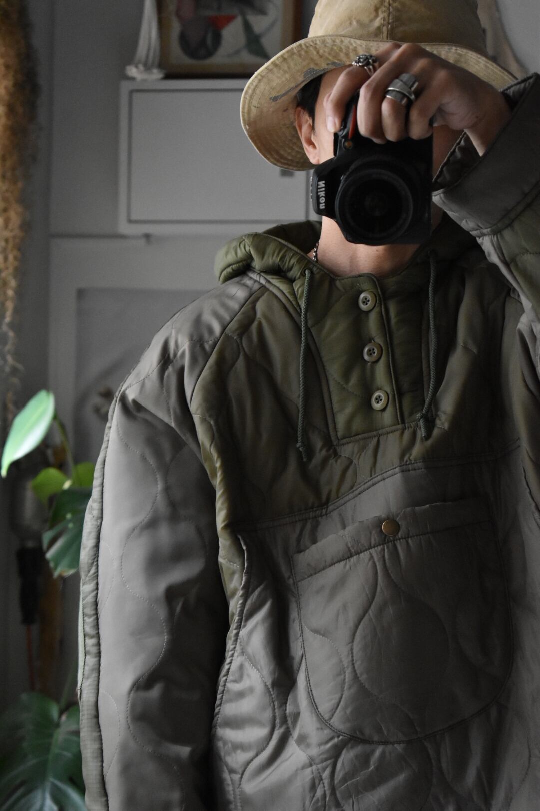 米軍のUSEDのキルティングライナーを贅沢に使用し、再構築されたアノラックパーカとなります。