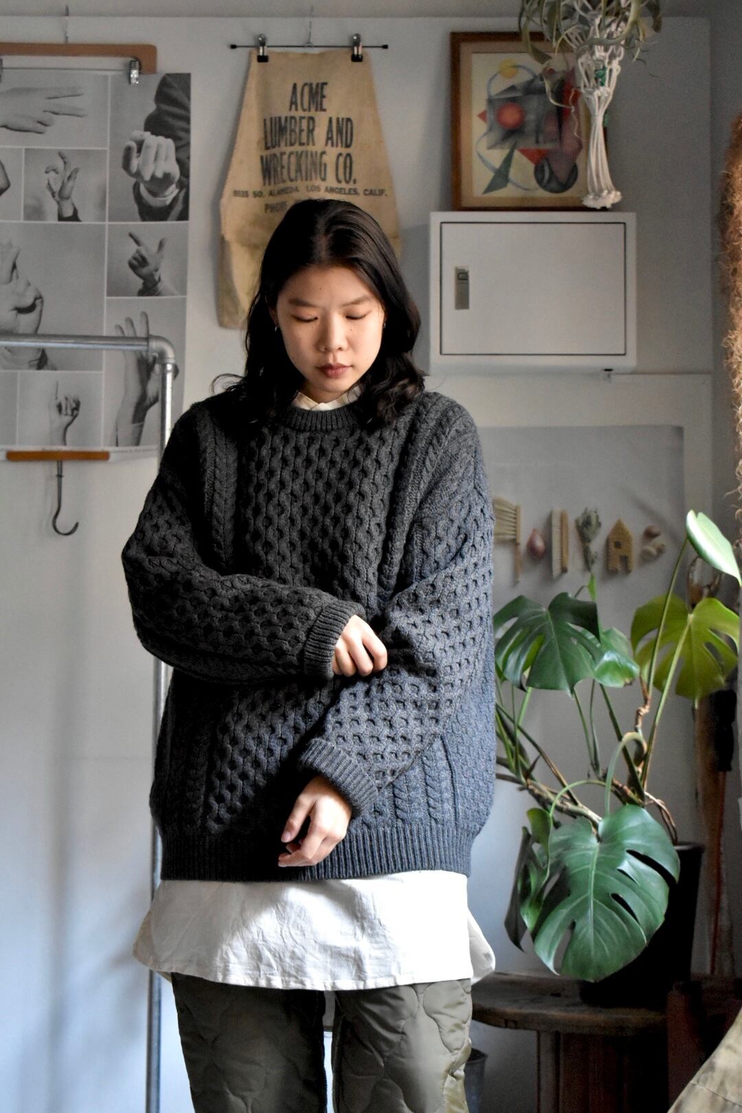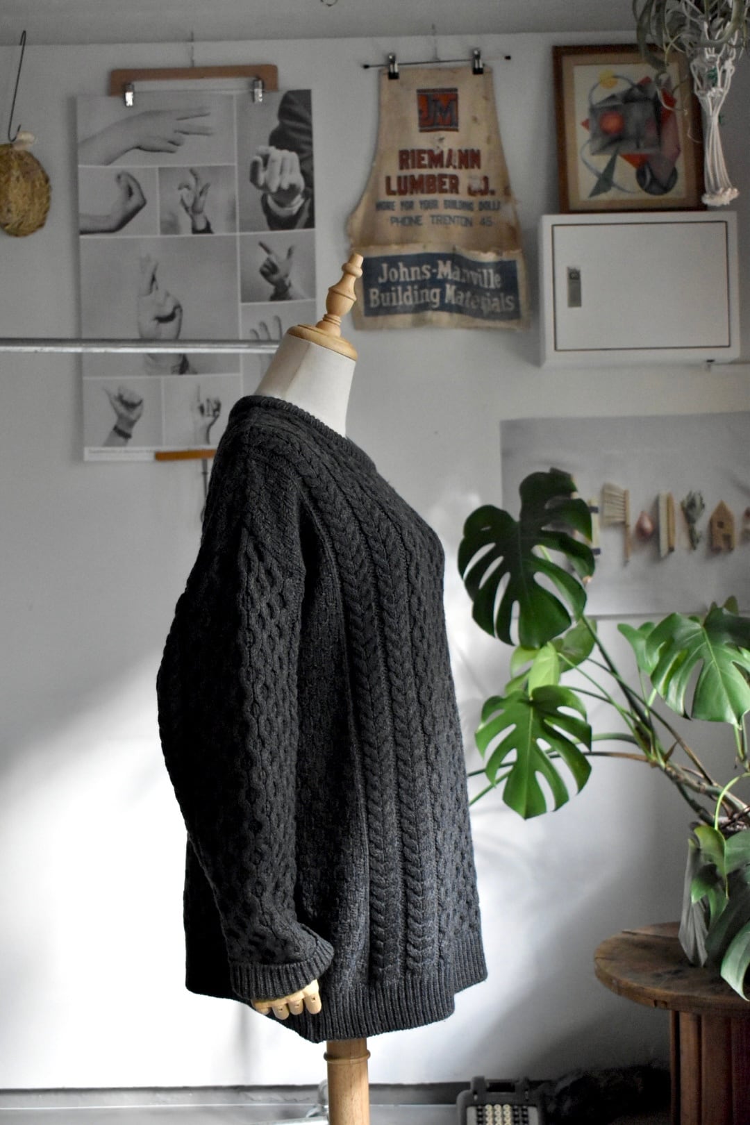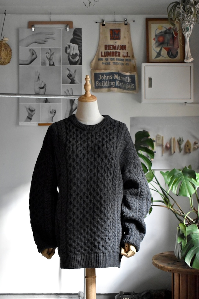 "old" "fisherman knit sweater" "charcoal gray" "made in ireland" "100% pure wool"のご紹介となります。