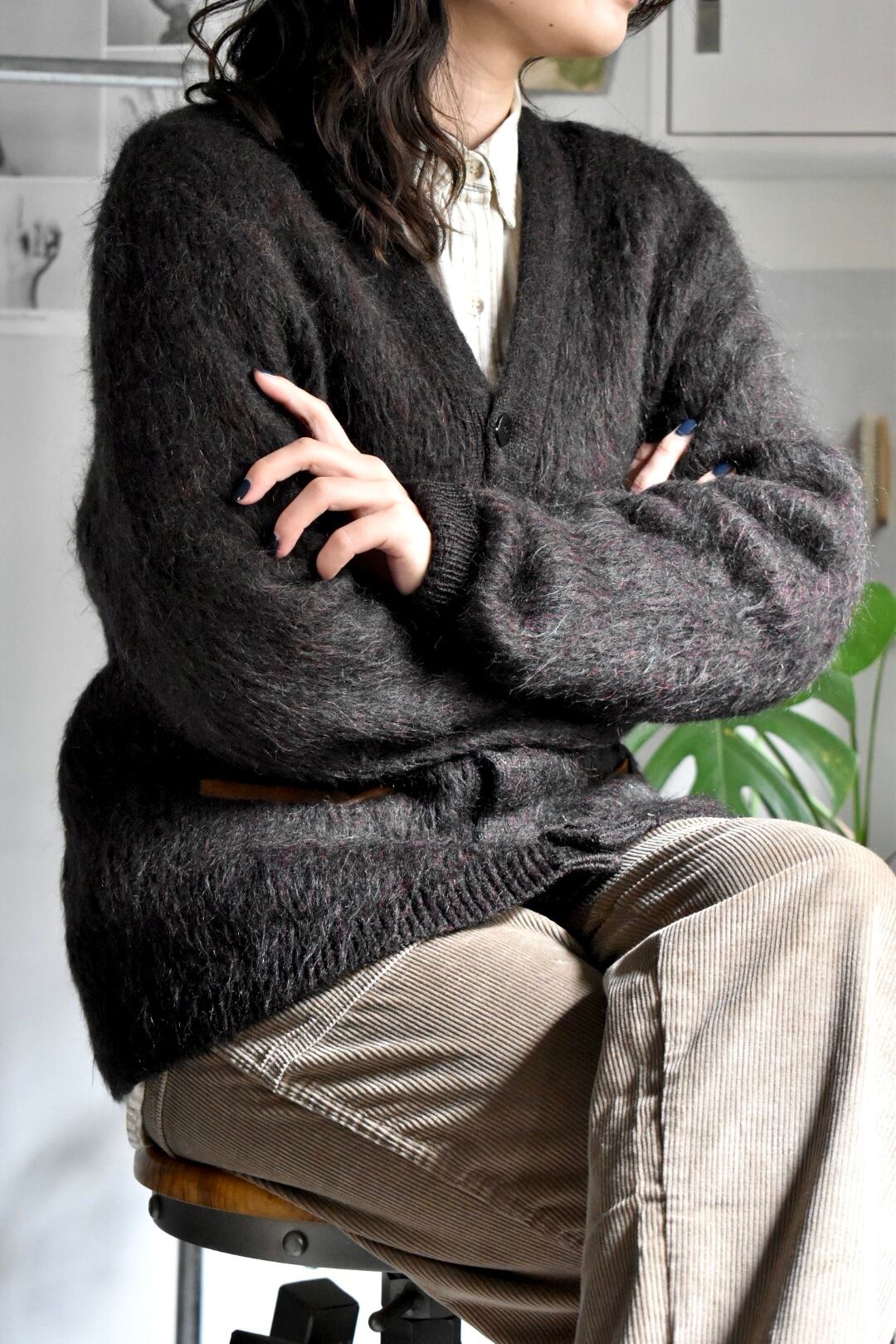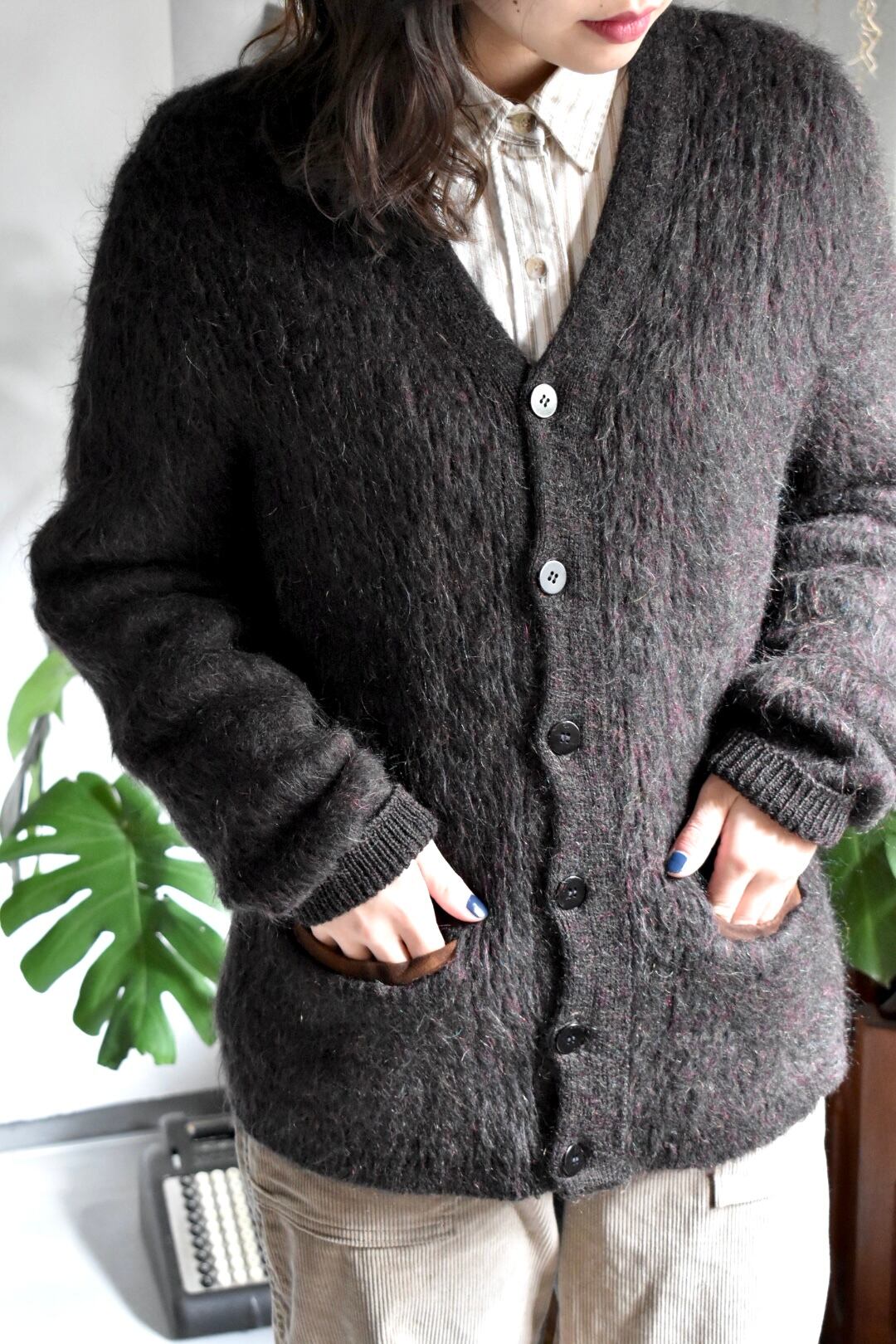 60's- vintage "mohair knit cardigan" "REVERE" "dark color"です。