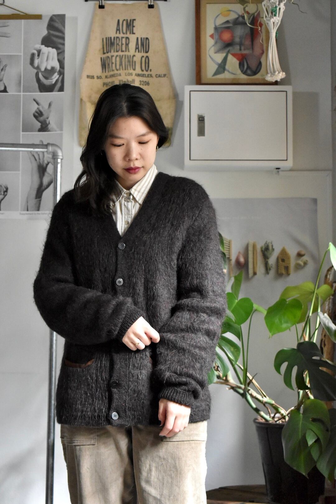 60's- vintage "mohair knit cardigan" "REVERE" "dark color"