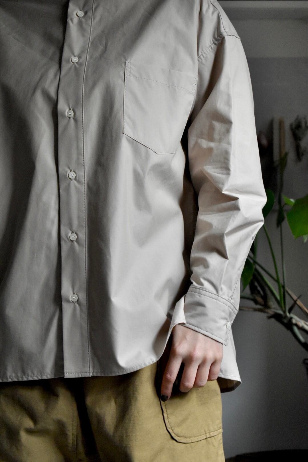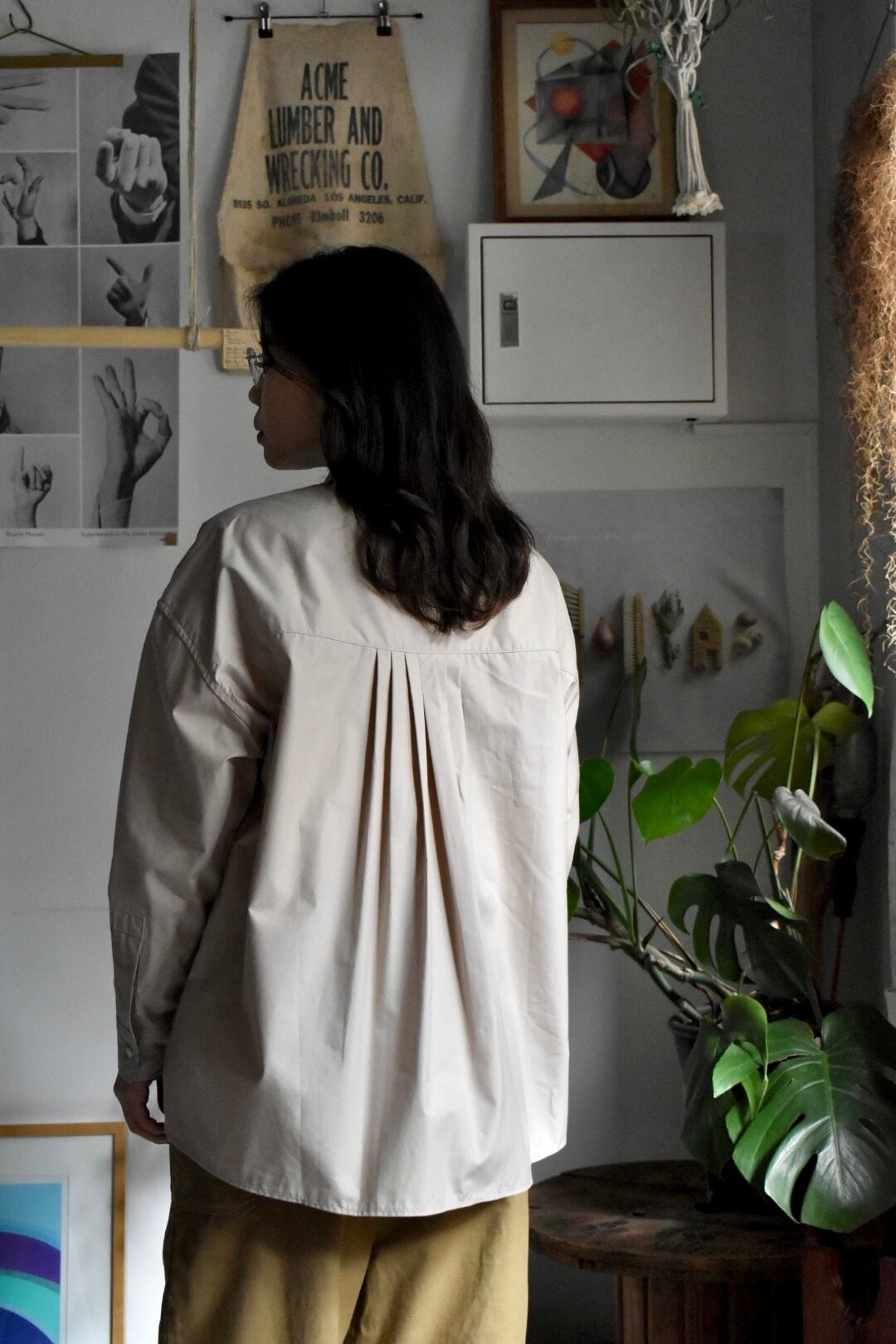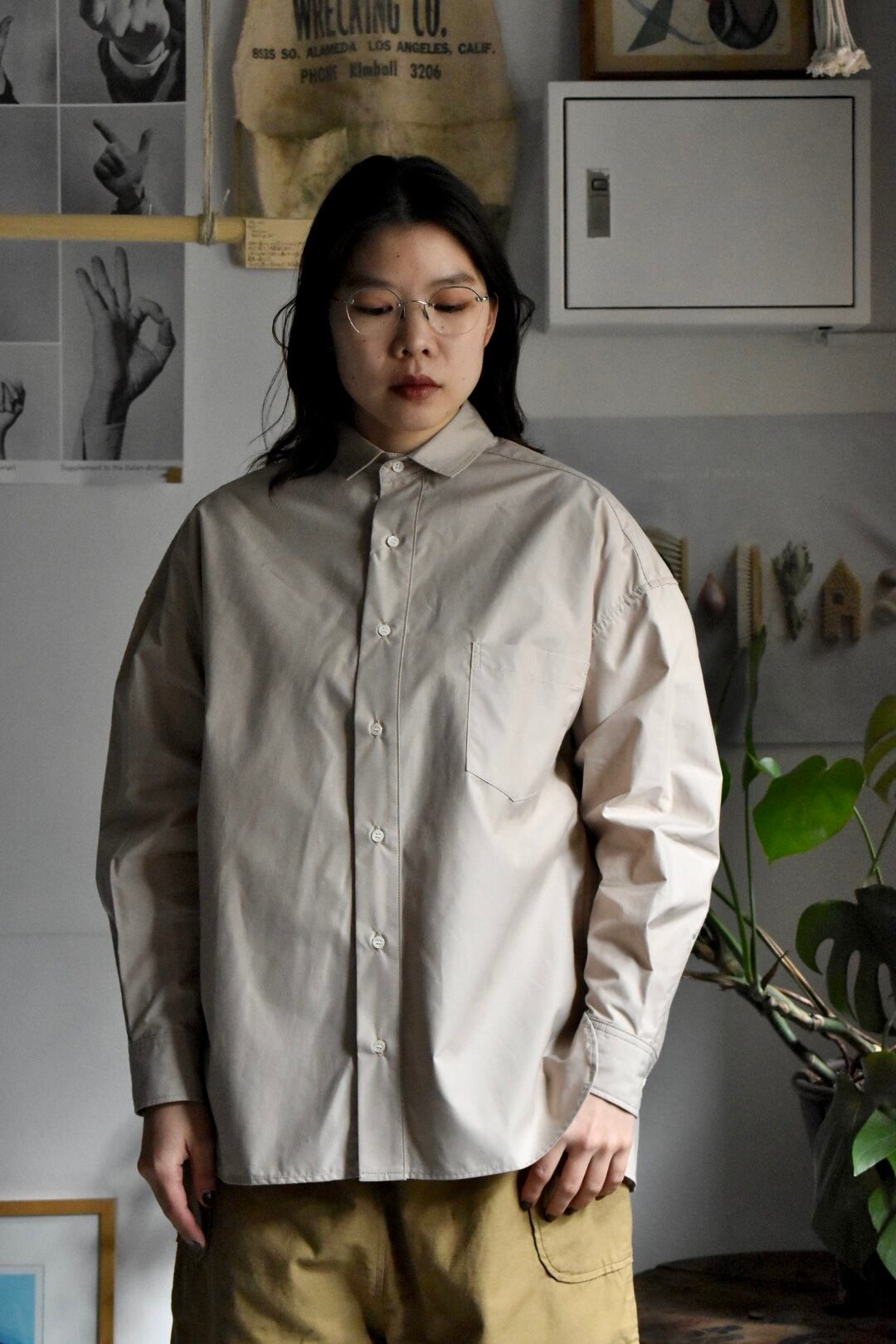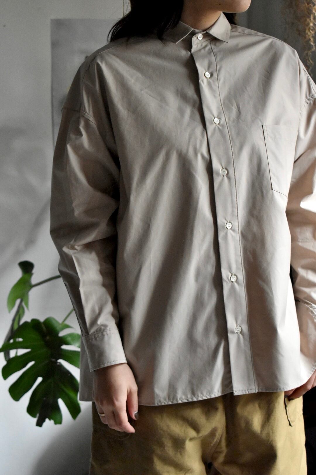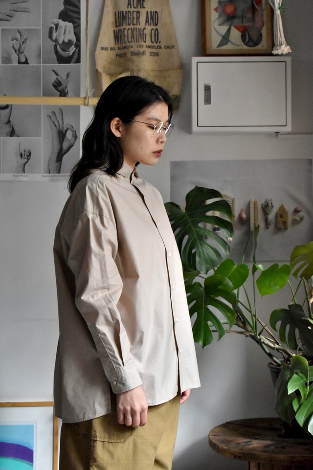 襟はコンパクトに仕上げており身巾にゆとりのあるワイドシルエットのシャツです。