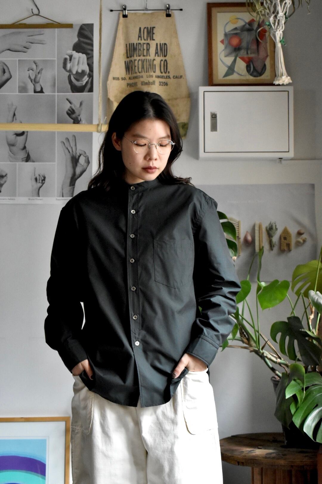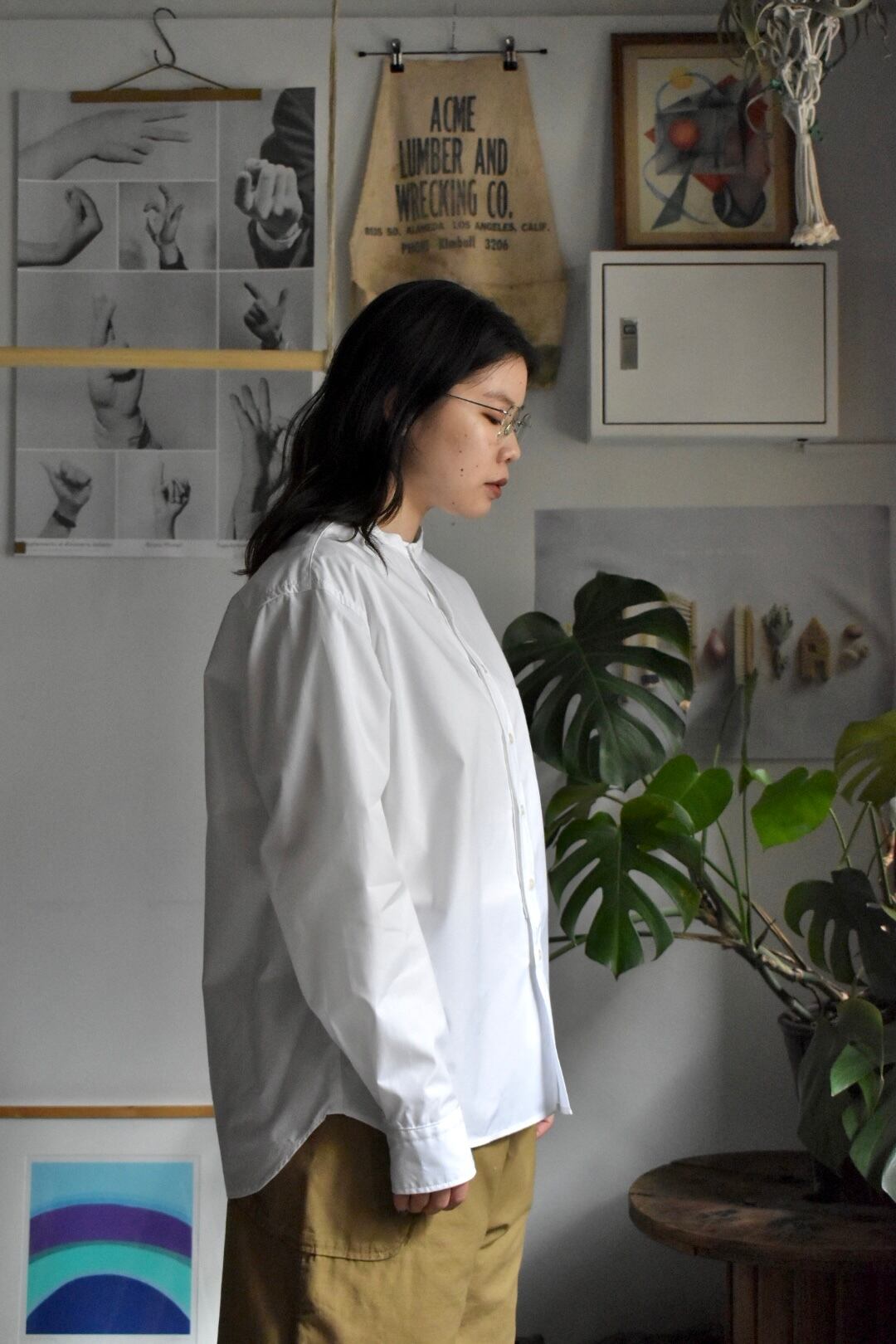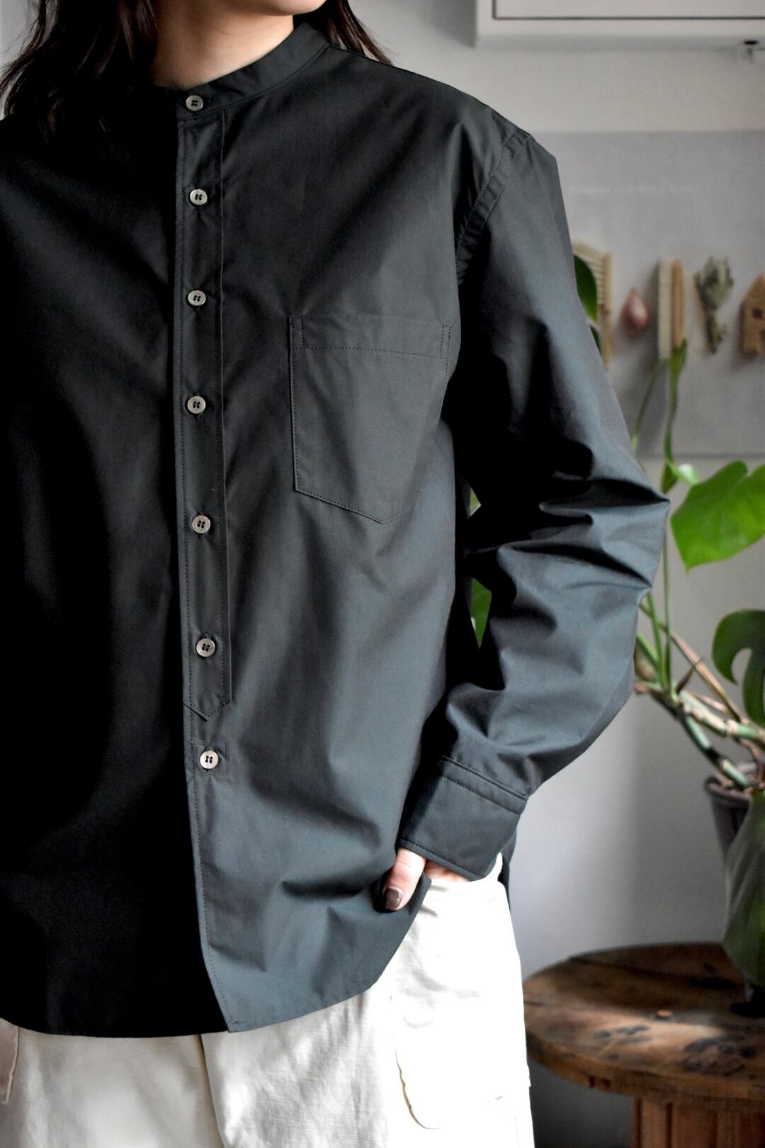 "sasanqua by trees" GIZACOTTON bandcolor comfort shirt AN-173