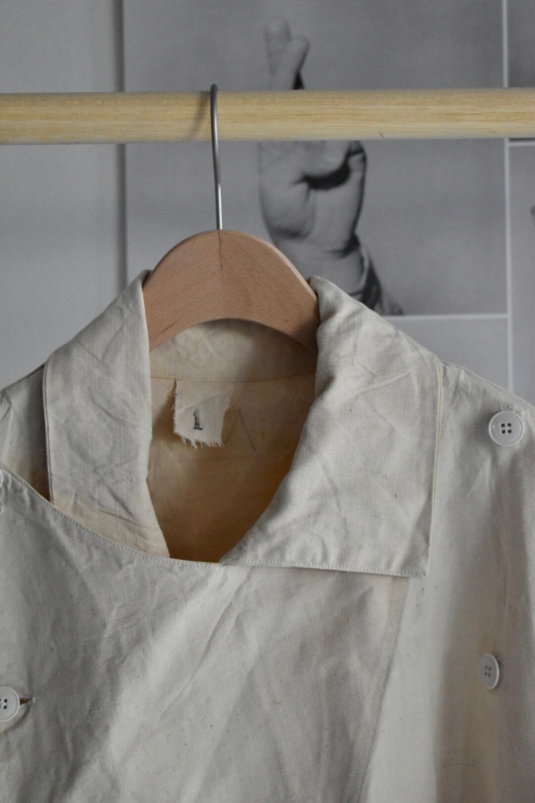 1950's- "vintage" "french military" "hospital coat" "french linen" size 1