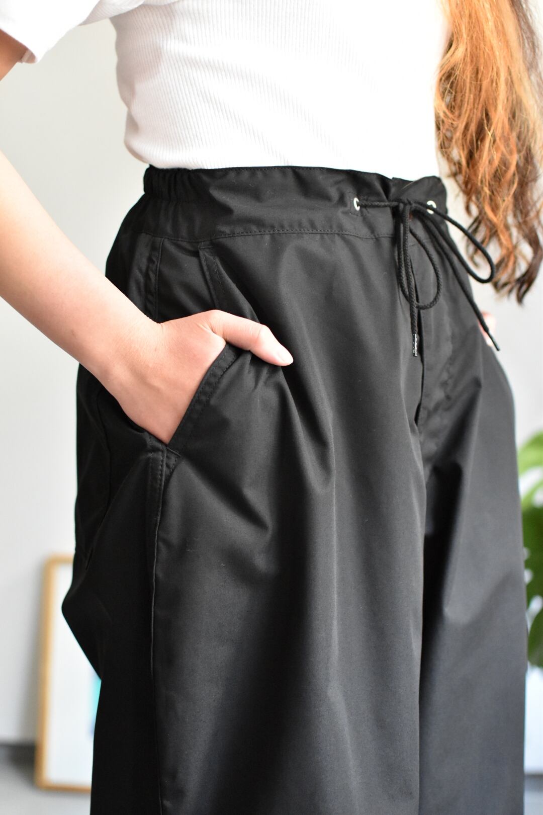 贅沢に使用した生地と膝に施されたタックにより独特なシルエットを演出します。