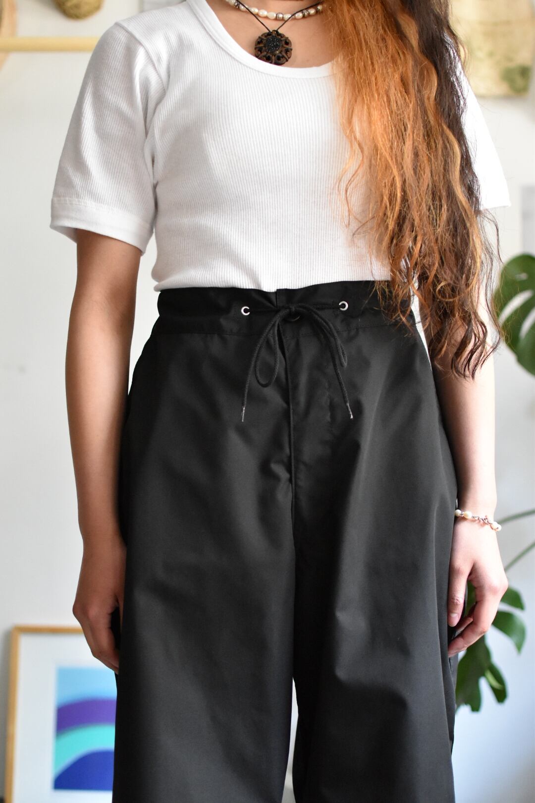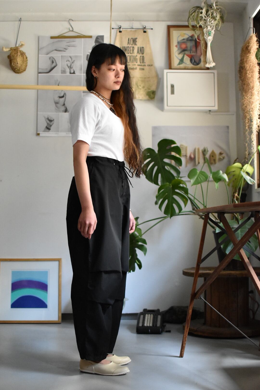 【ウエスト最大幅35㎝×2(ウエスト紐で調整可能)股上41㎝ 股下64㎝ ヒップ53㎝×2 ワタリ38㎝ 裾幅22.5㎝ 総丈99㎝】