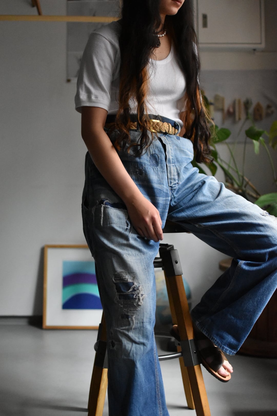 60's- "vintage" "denim painter pants" "SEARS" "junk remake"