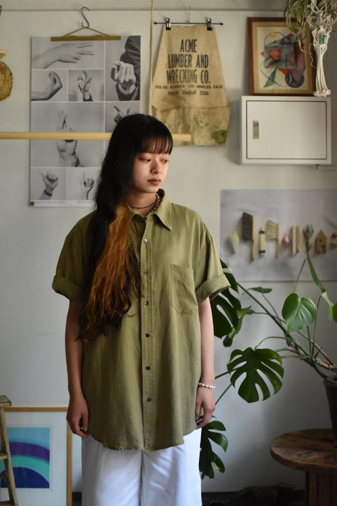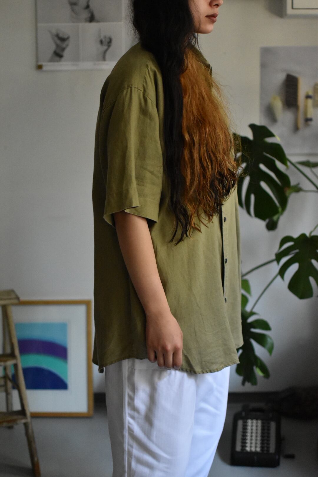 90‘s -old- "JCREW" "s/s linen shirts" "olive"