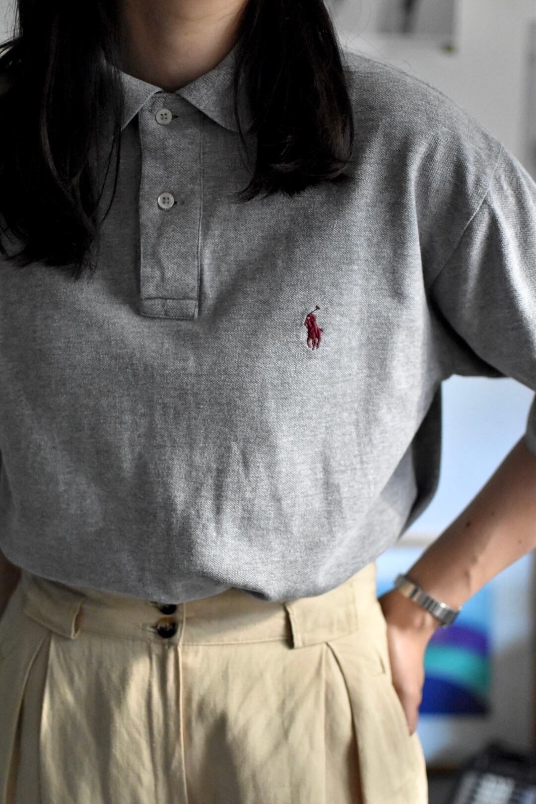 90's- s/s polo shirts" "ralph lauren" "gray" size Sの御紹介となります。