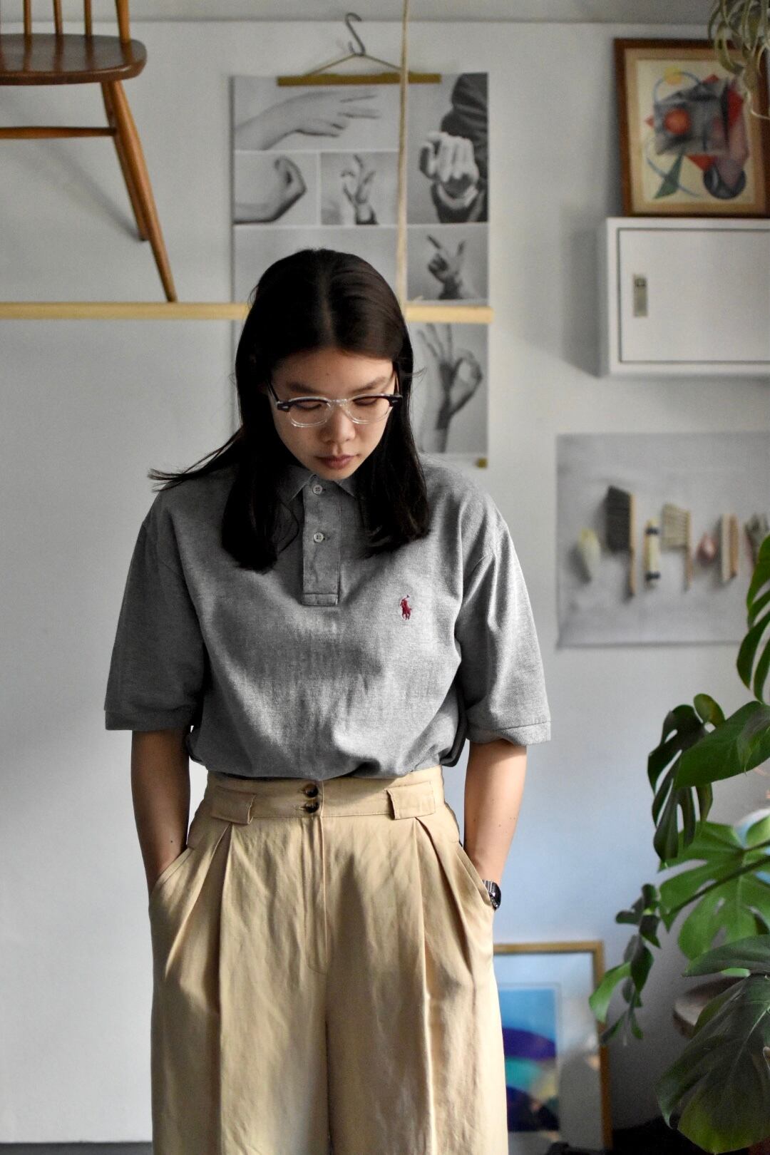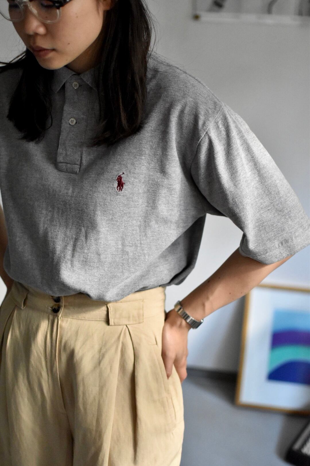 90's- s/s polo shirts" "ralph lauren" "gray" size S