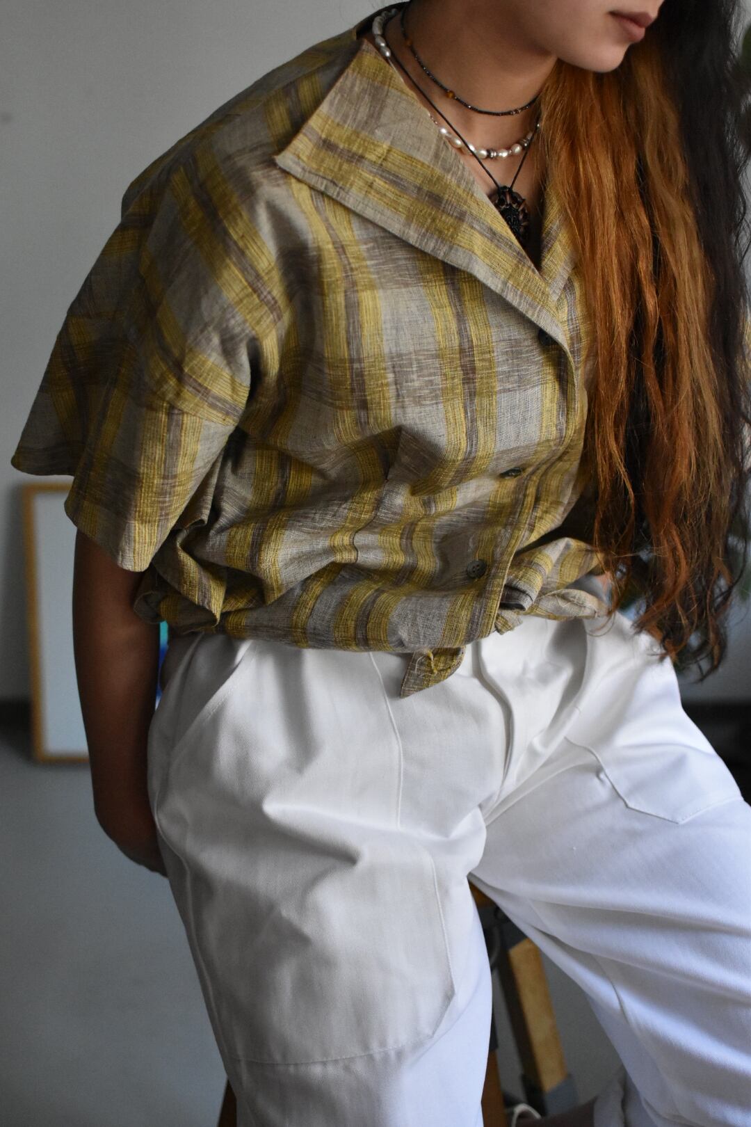 80's- -old- "design check shirts" "cotton linen"の御紹介となります。