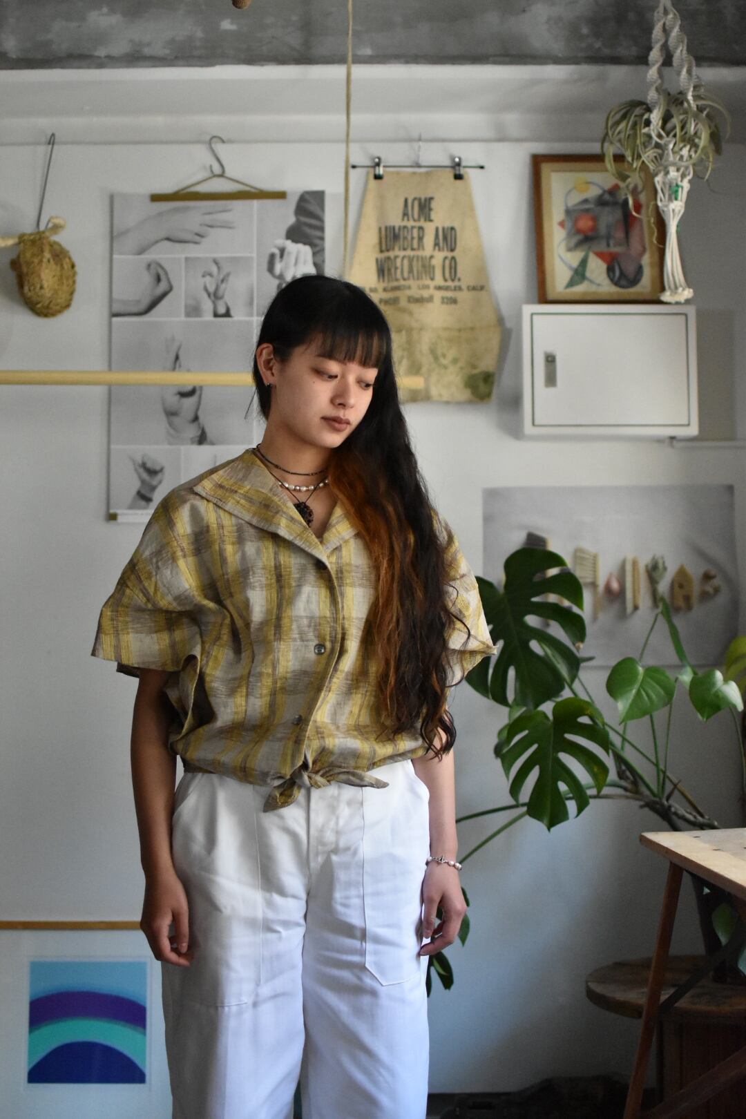 80's- -old- "design check shirts" "cotton linen"