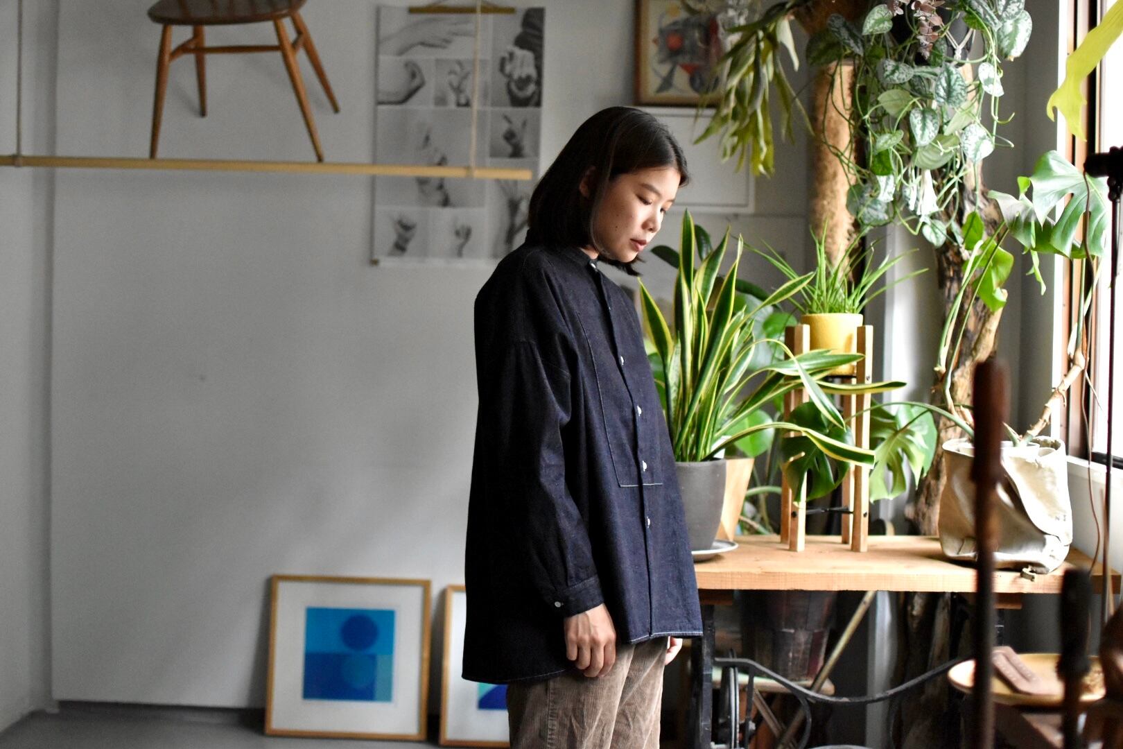 "sasanqua by trees" "band collor cherie shirt" "cotton hemp"(ivory) "soccer corduroy(beige) "60z katsuragi denim(navy) "AN-192"
