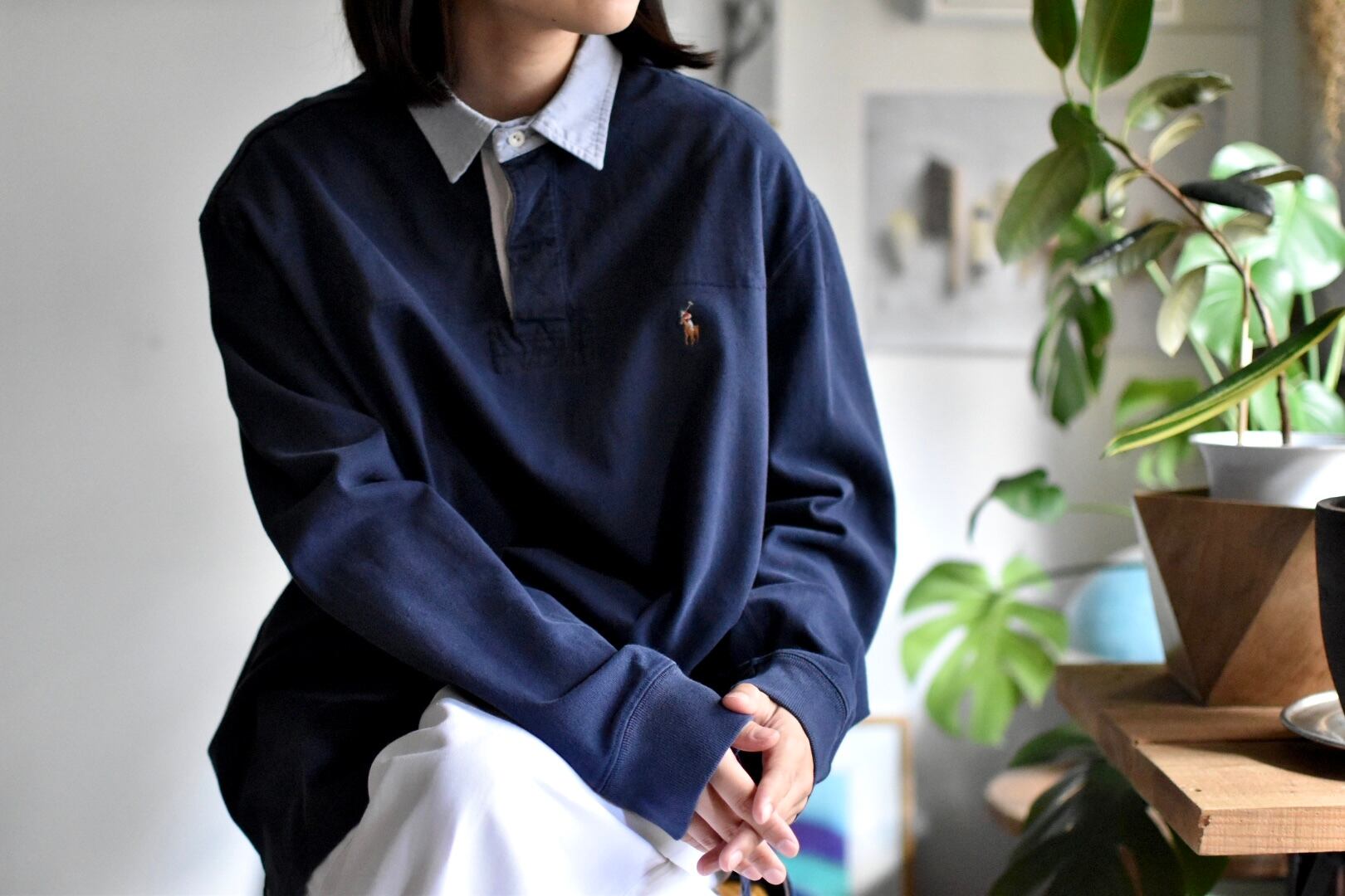 90's- "rugger shirt" "ralph lauren "plain color" "navy"の御紹介となります。