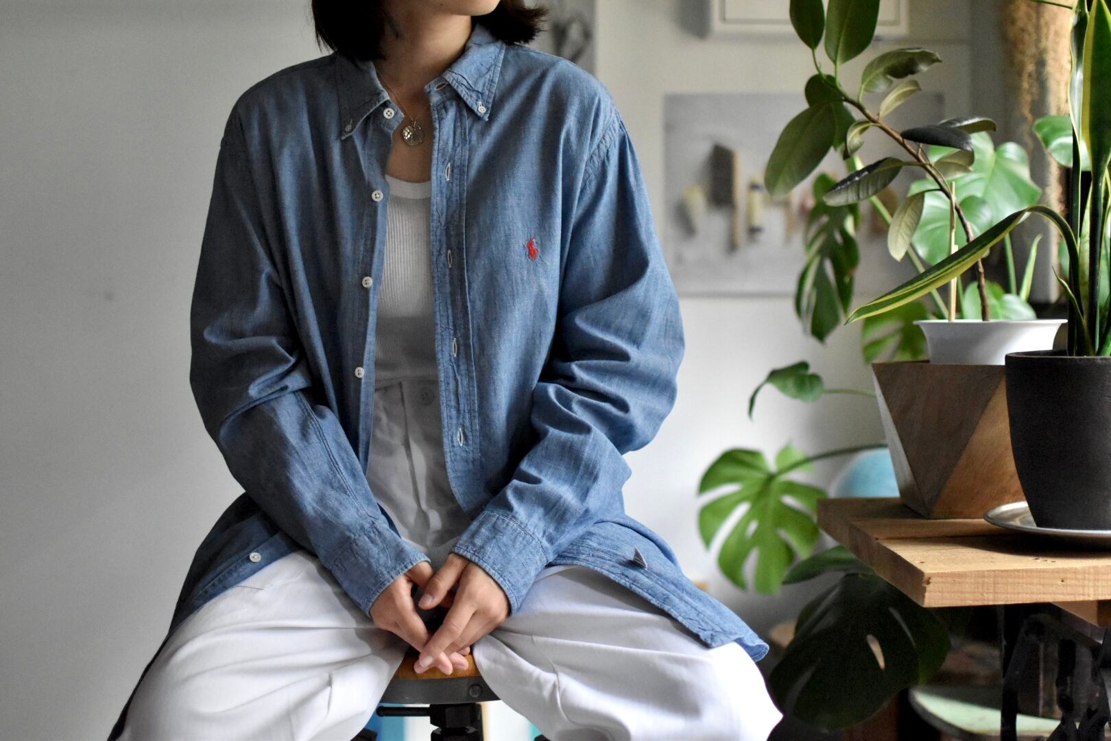 90's- "ralph lauren" "l/s B/D shirt" "denim"
