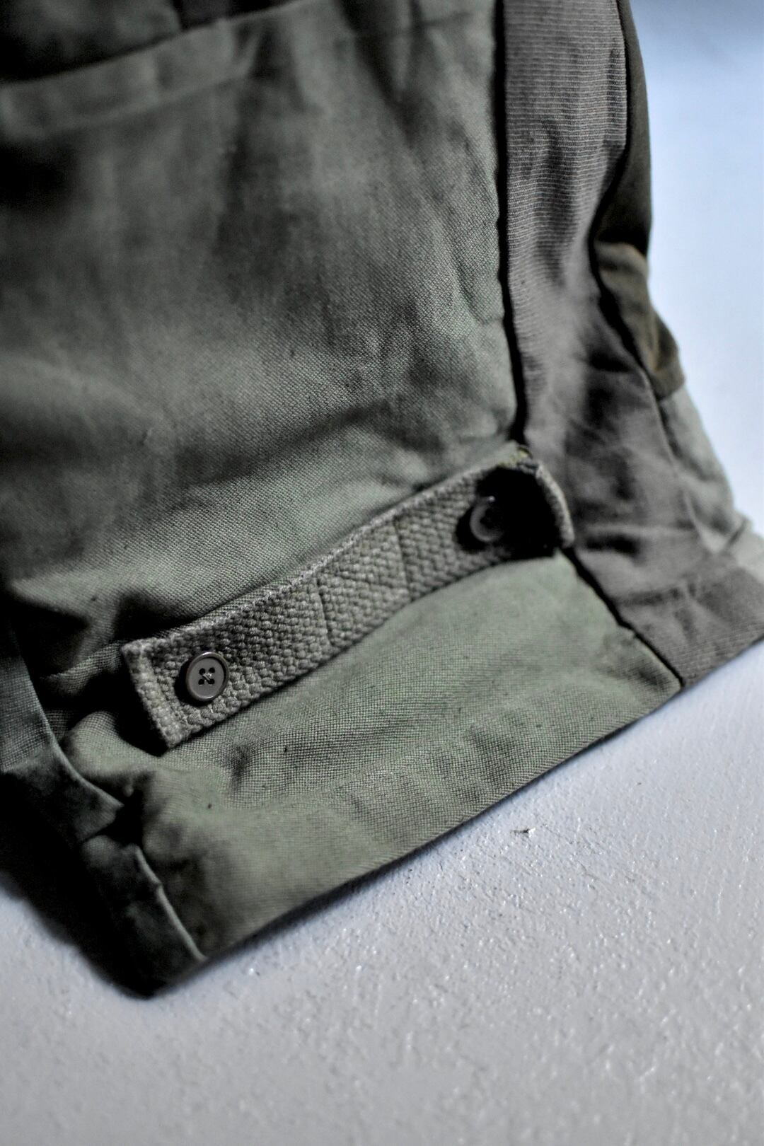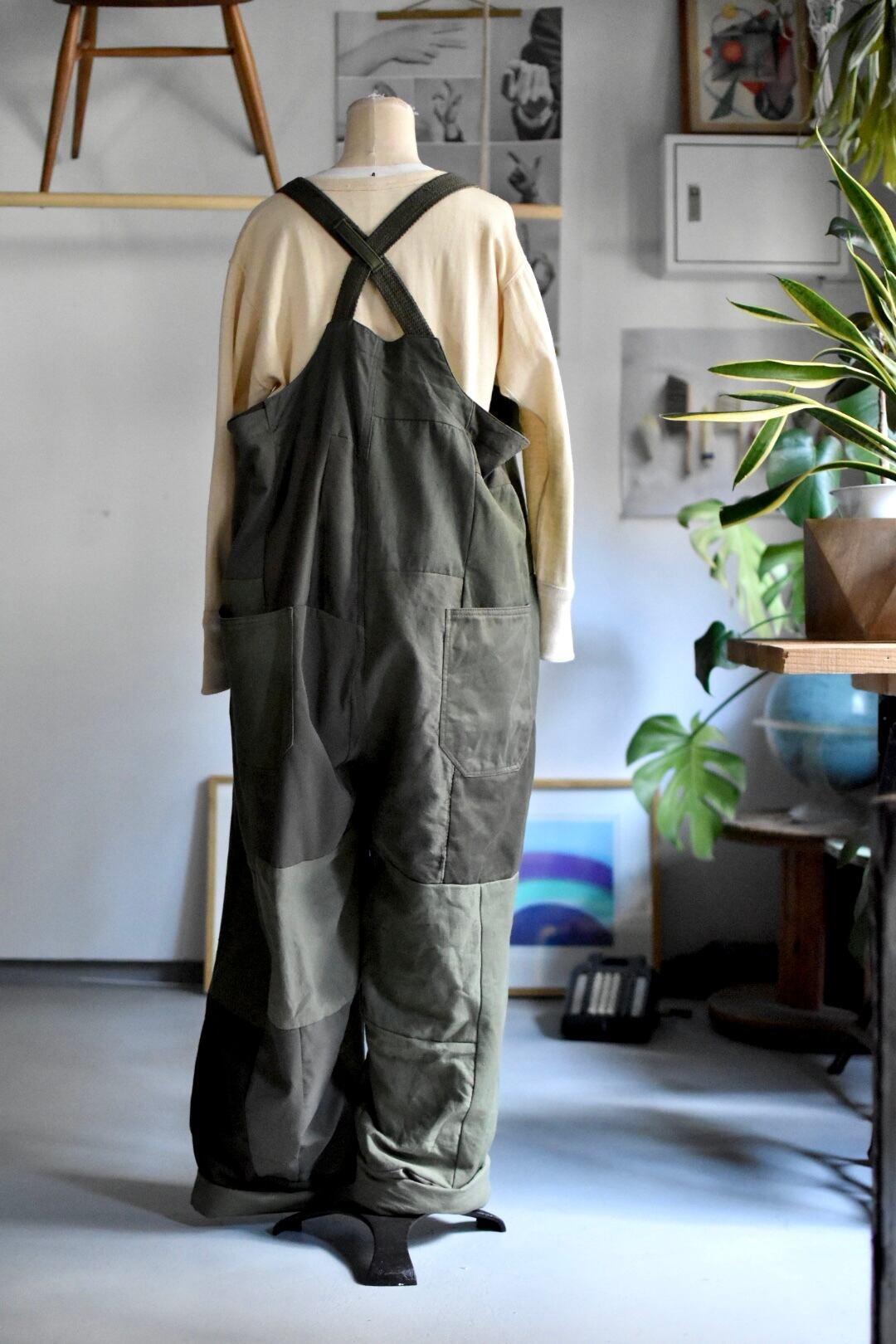 USEDのミリタリーのコットン生地を集め、再構築されたオーバーオール。