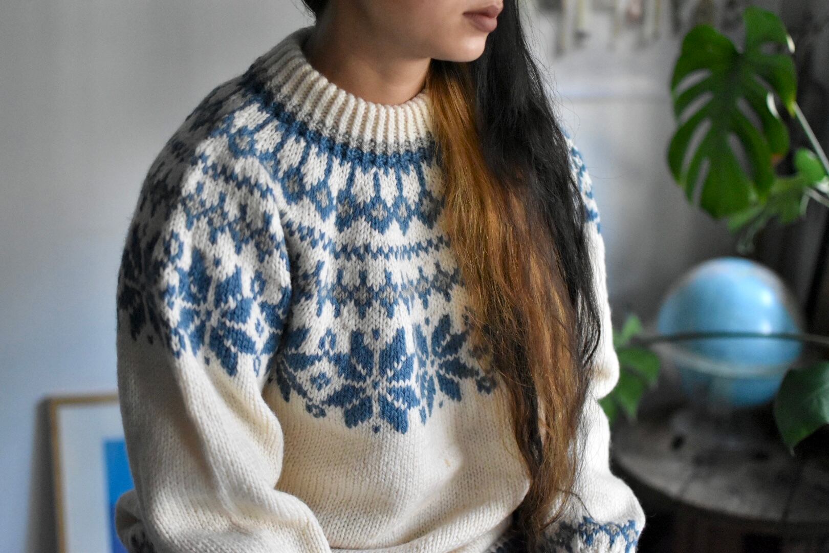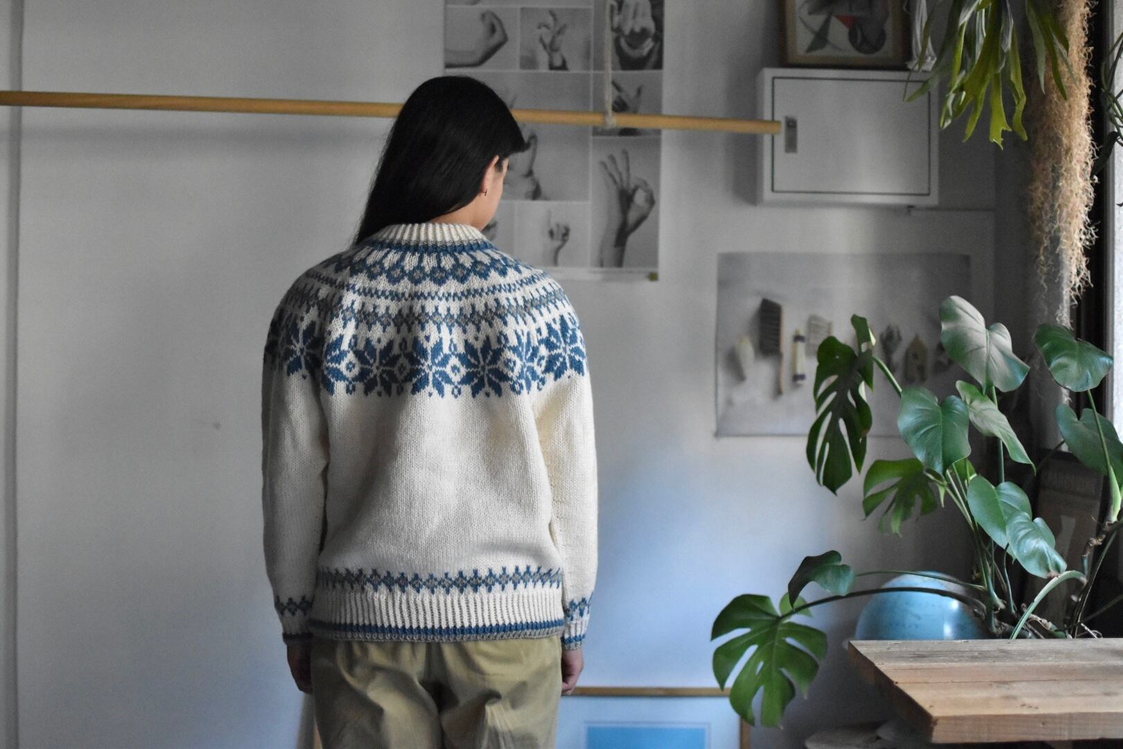 とても良い配色で、シンプルながら着やすいノルディックセーターです。
