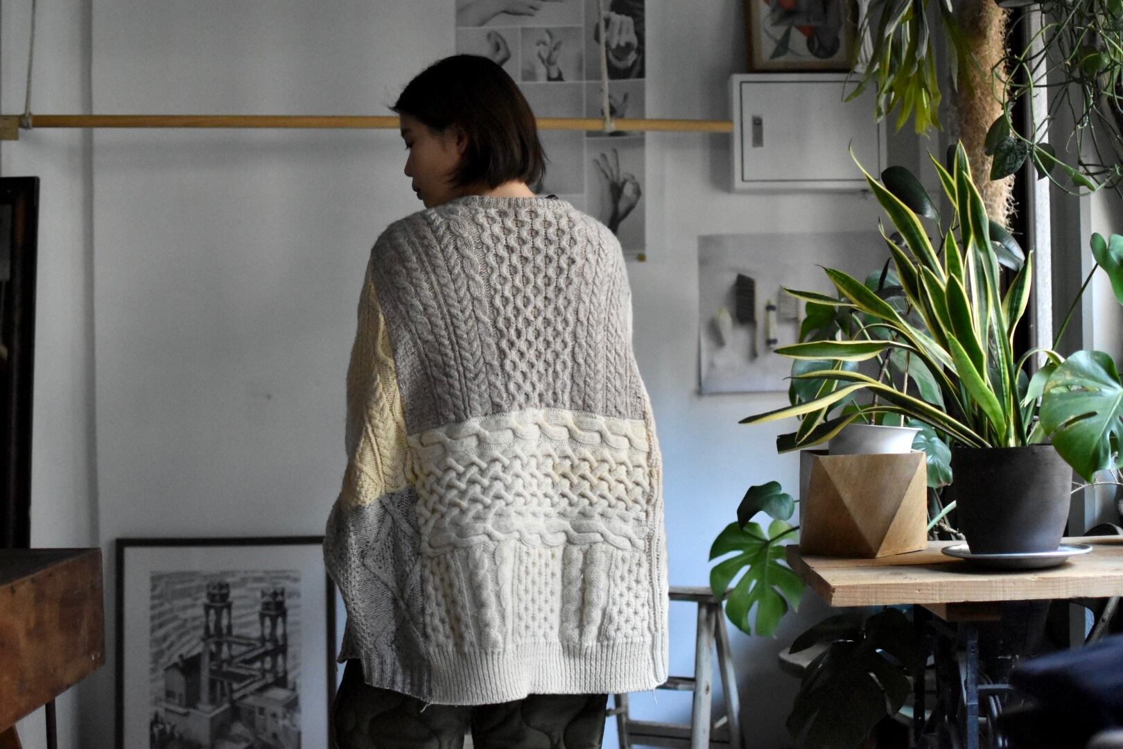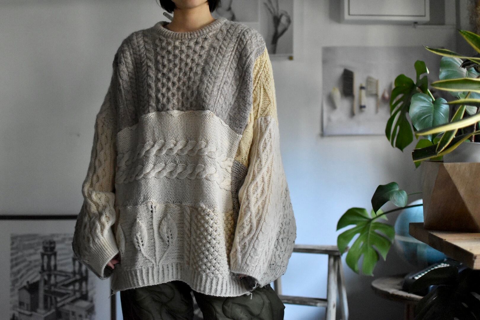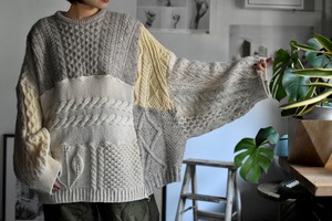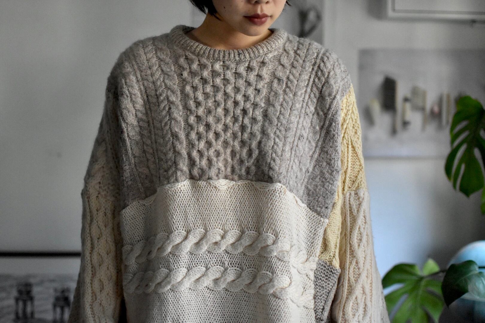 オールドのフィッシャーマンニットを集め、解体し再構築されたパッチワークニット。