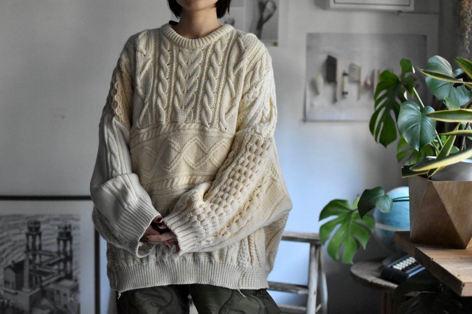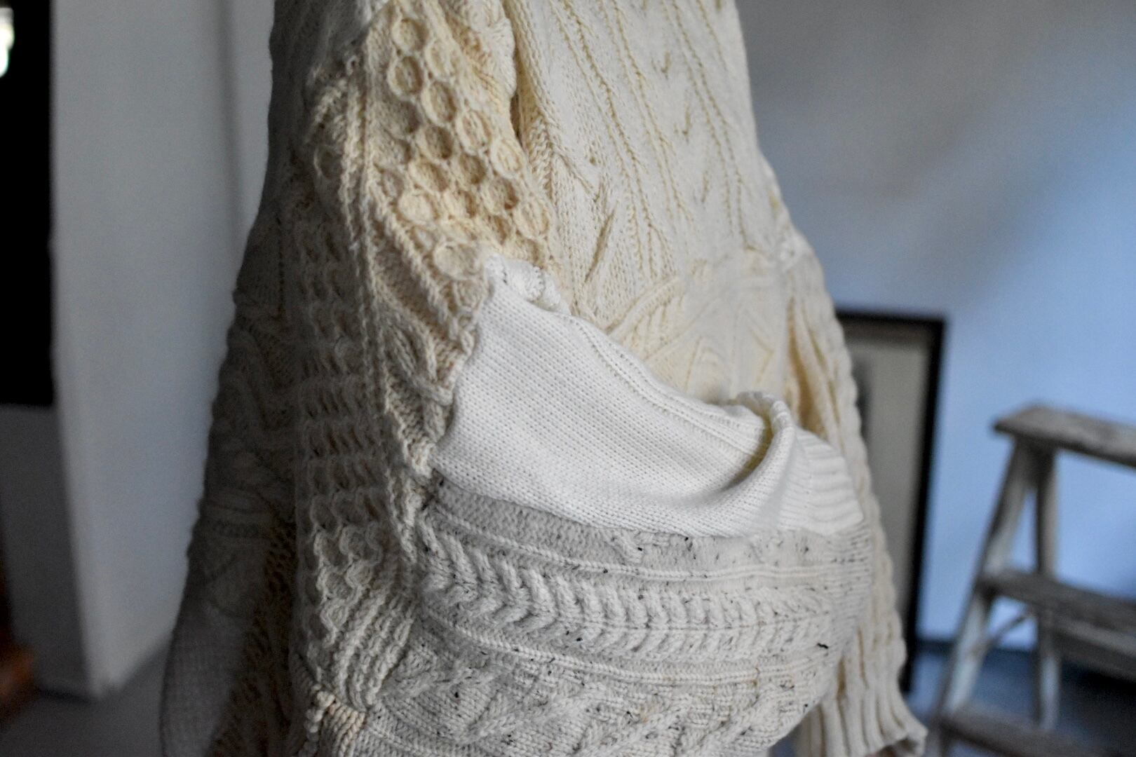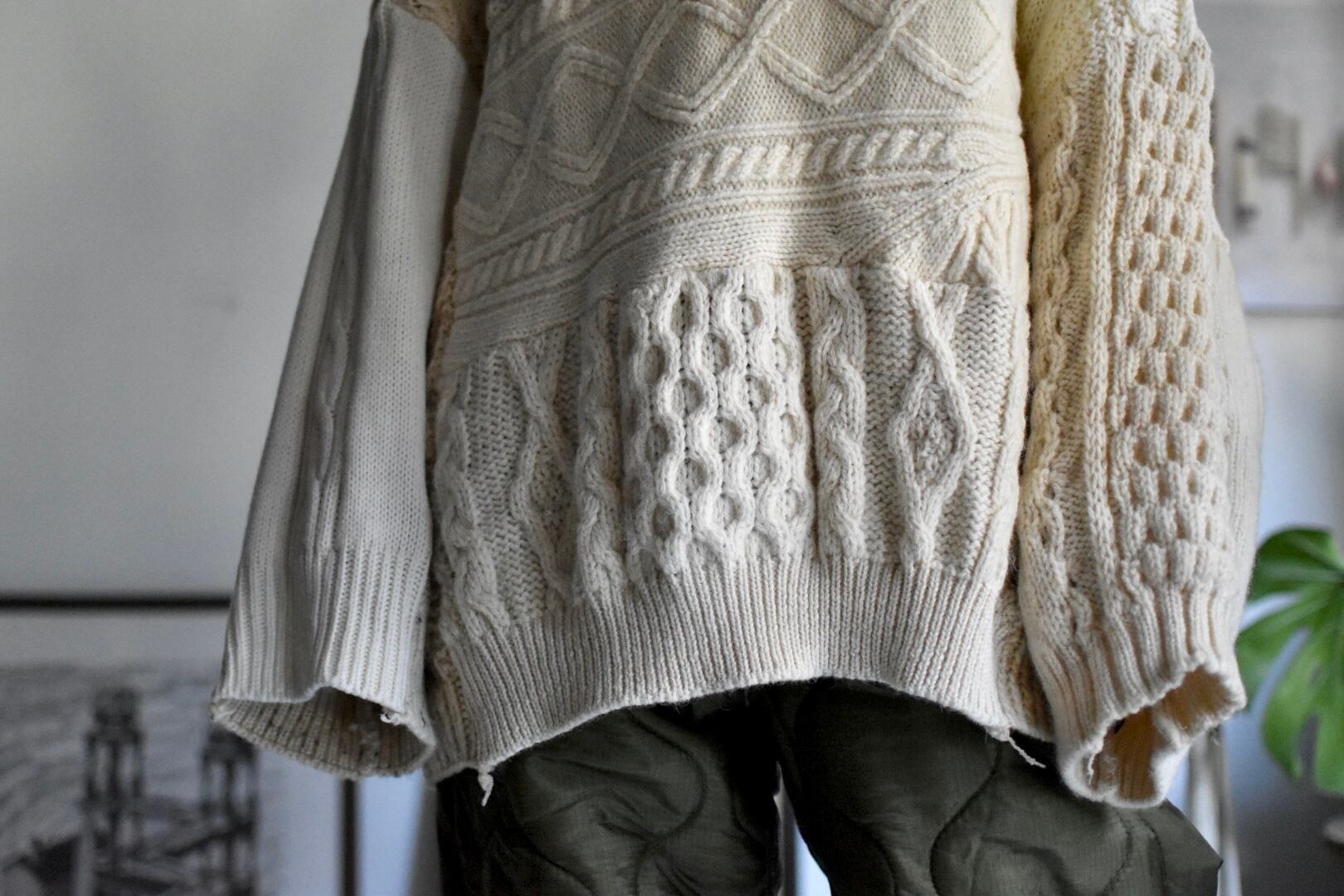 オールドのフィッシャーマンニットを集め、解体し再構築されたパッチワークニット。