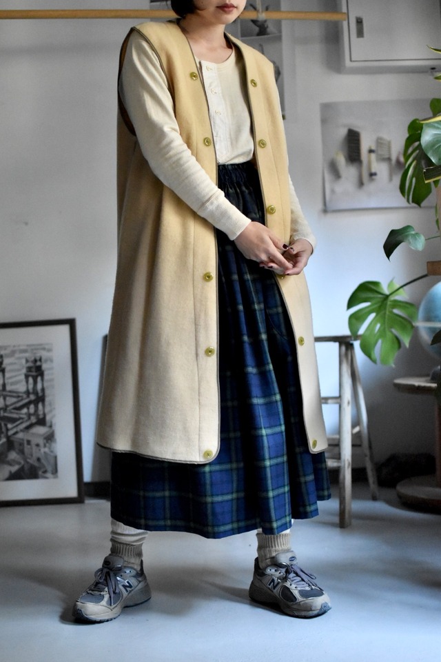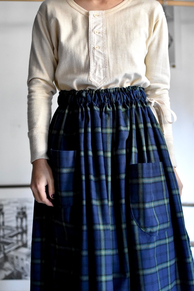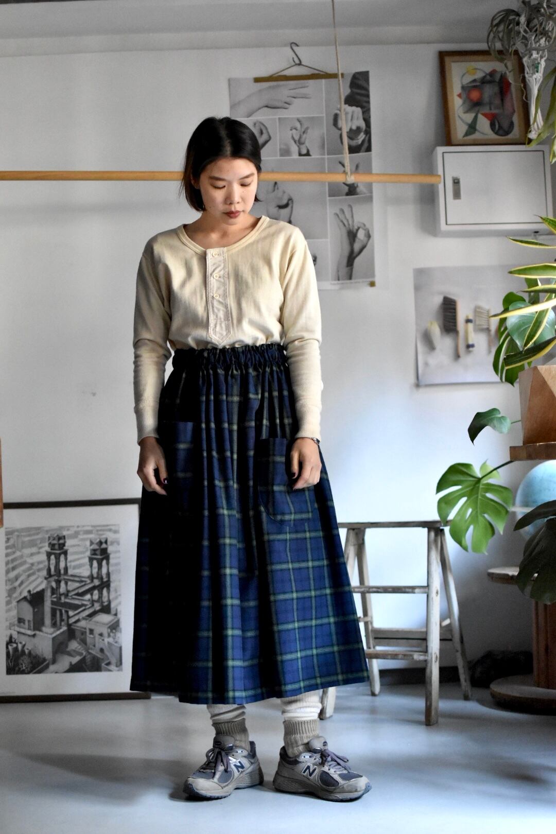 -sasanqua by trees- "Madras check layer pocket skirt"