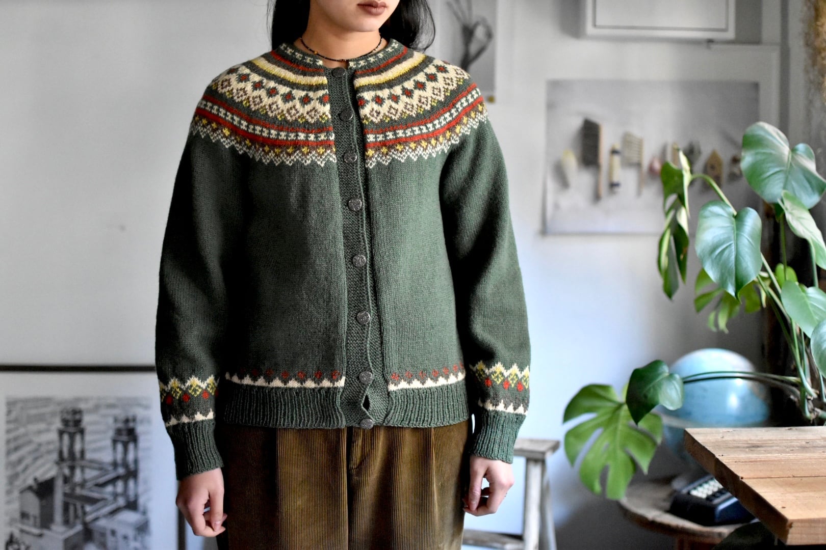 70's- -vintage- "Nordic knit cardigan"のご紹介となります。