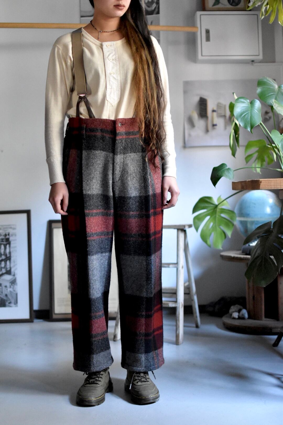 80's- -old- "wool check pants" "ralph lauren" "made in usa" "with suspender"のご紹介となります。