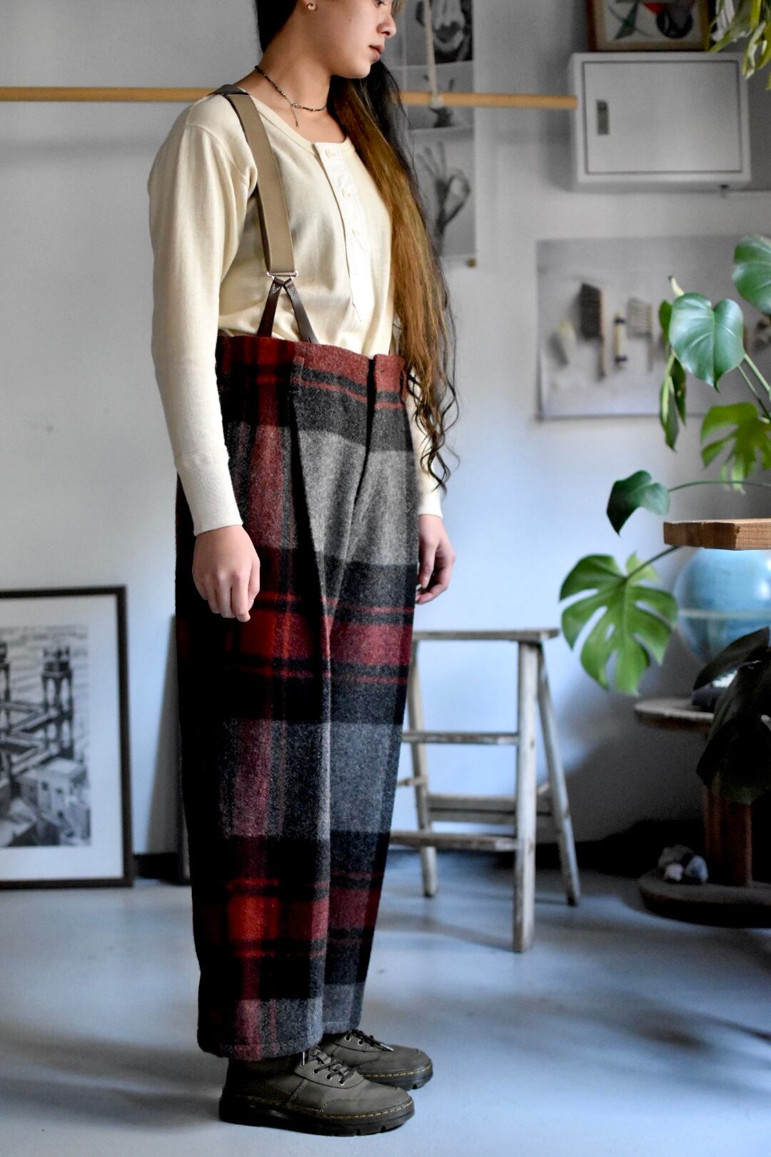 80's- -old- "wool check pants" "ralph lauren" "made in usa" "with suspender"
