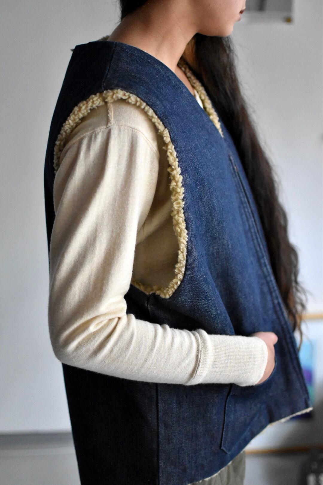 70's- vintage "denim boa vest"のご紹介となります。