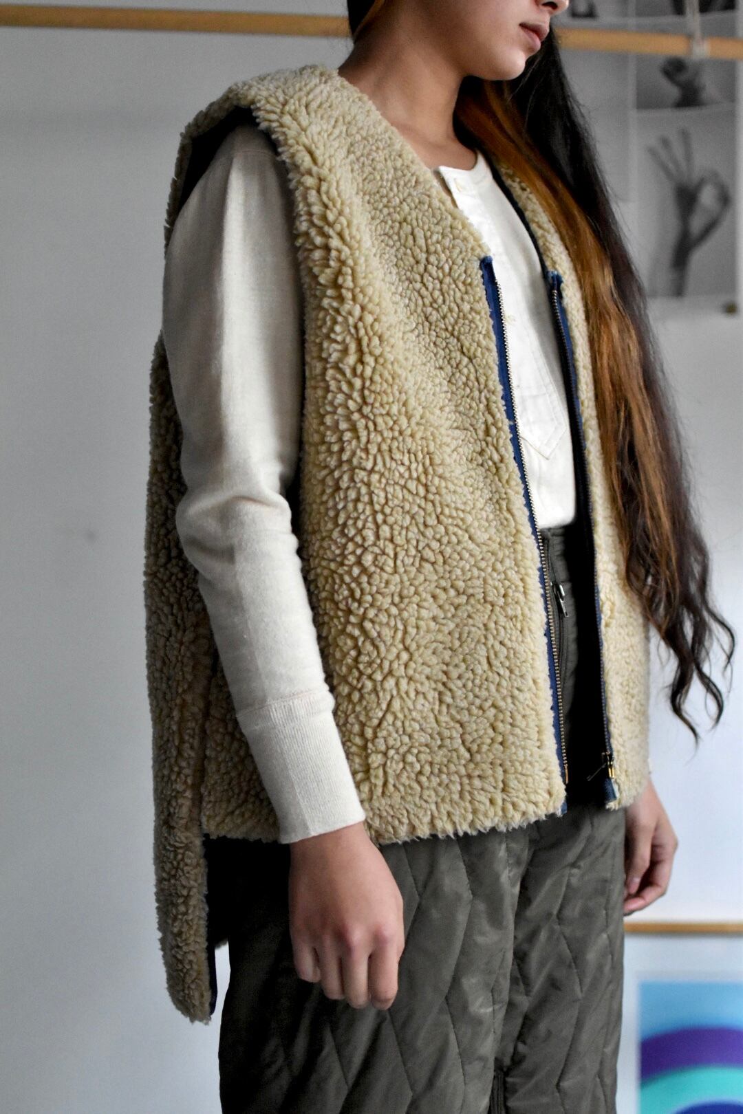 70's- vintage "denim boa vest"