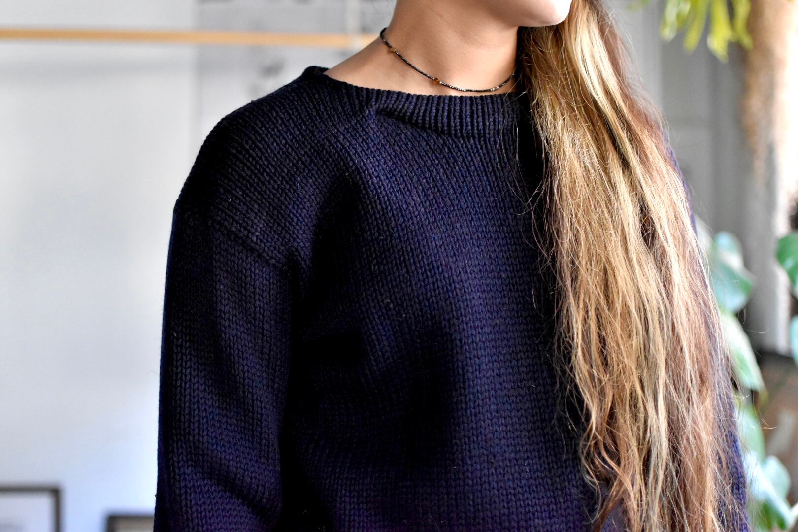 40's- -vintage- "lowgauge knit sweater" "navy" "armstrong sport knit goods"のご紹介となります。