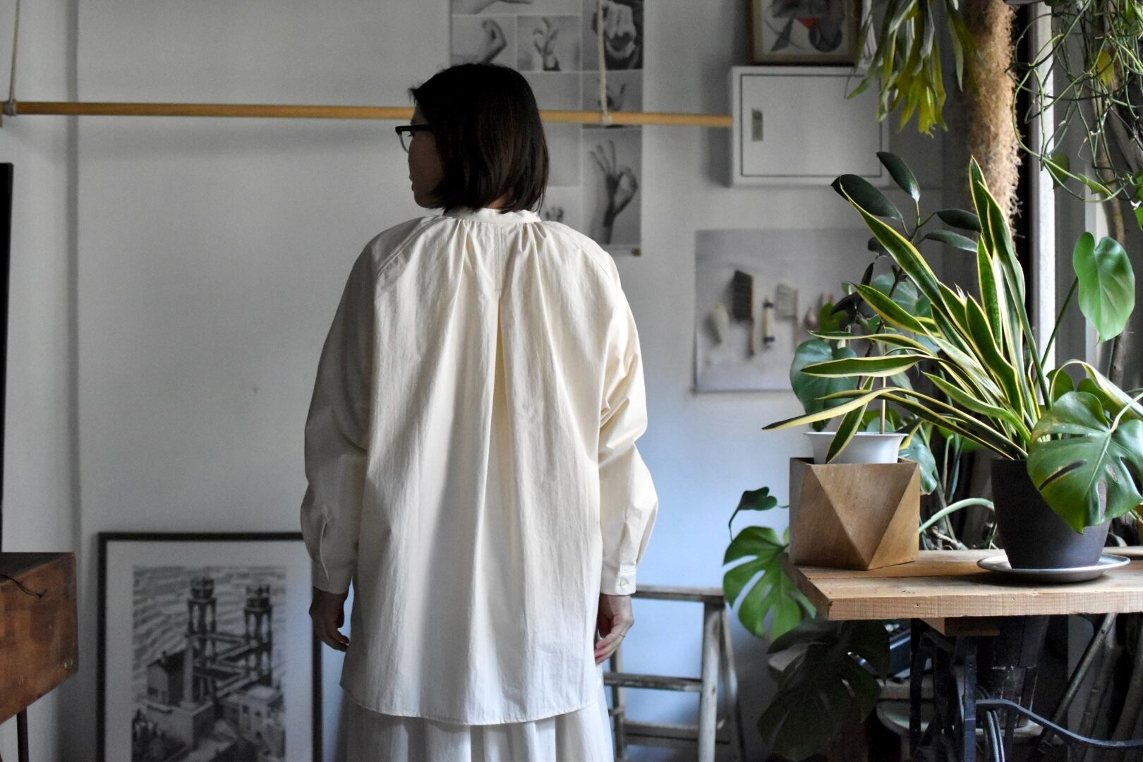 "sasanqua by trees" "high density poprin" "antique gather shirt"