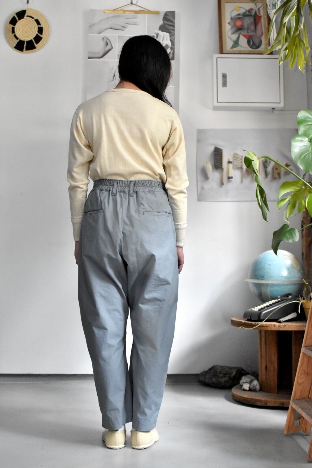 バナナのような形状のこのパンツは広がり過ぎない程良いボリュームと曲線がその特徴的なシルエットを構築しており、サザンカさんの定番パンツ。