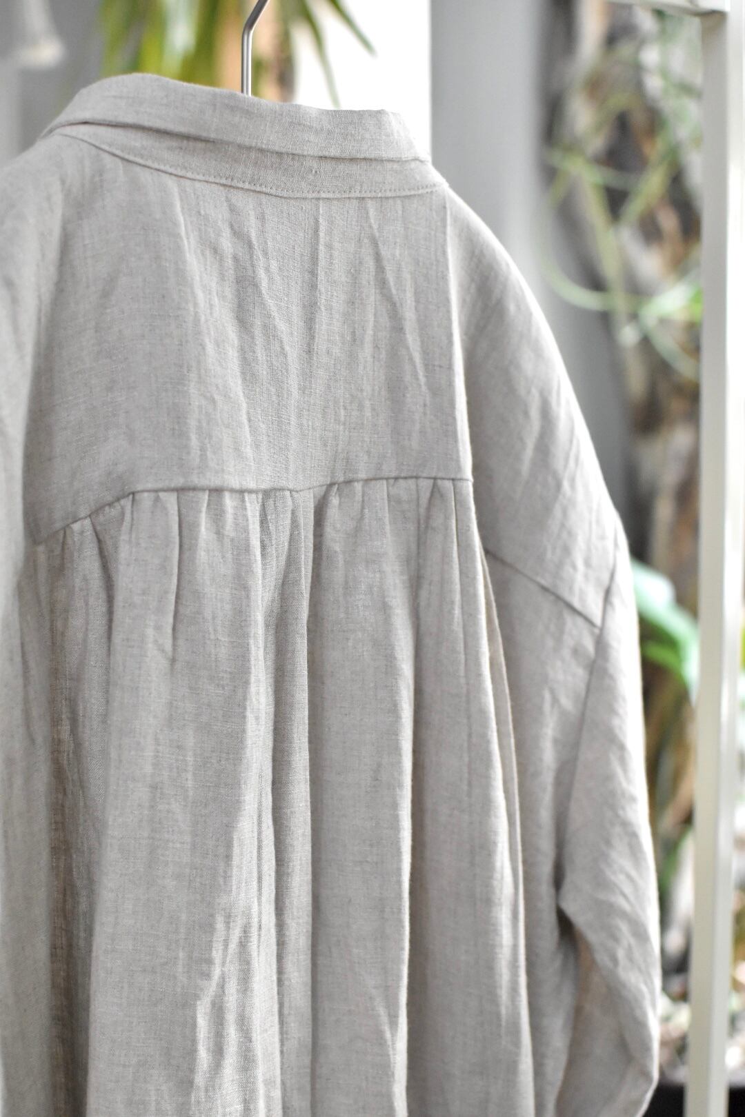 こじんまりとした襟が印象的なリネンブラウスに仕上げました。