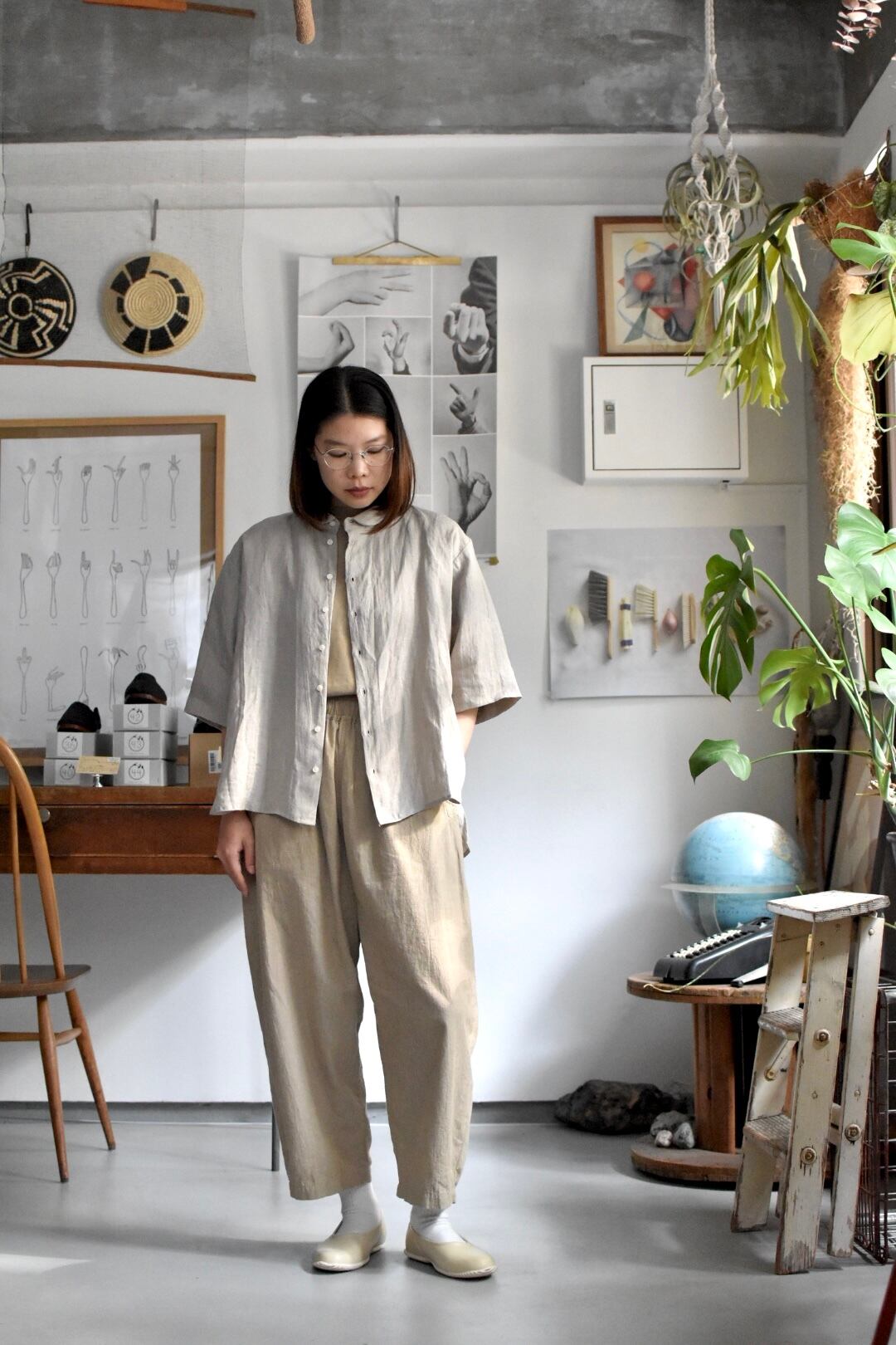 "sasanqua by trees" "AN-214" "FRENCH LINEN CANVAS WASHER" "french linen half sleeve blouse"