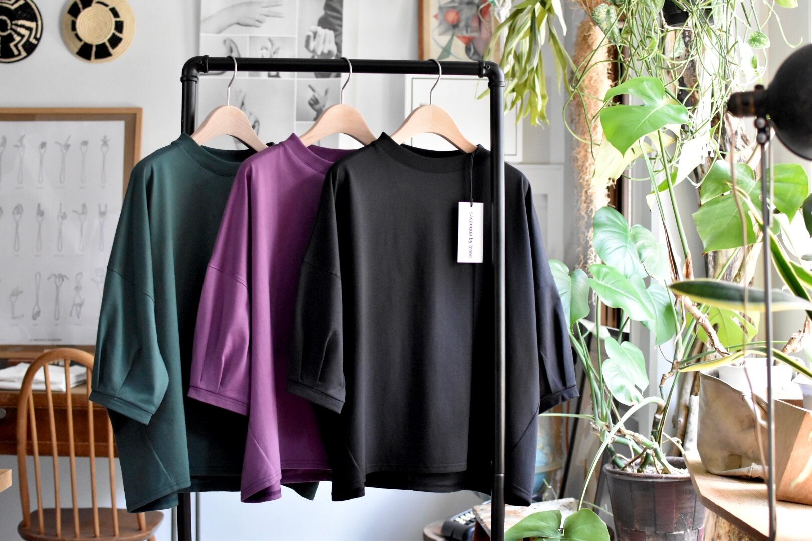 "sasanqua by trees" "AN-217" "40/2 ORGANIC COTTON HIGH GAUGE SINGLEJERSEY" "Tuck sleeve cut sew"