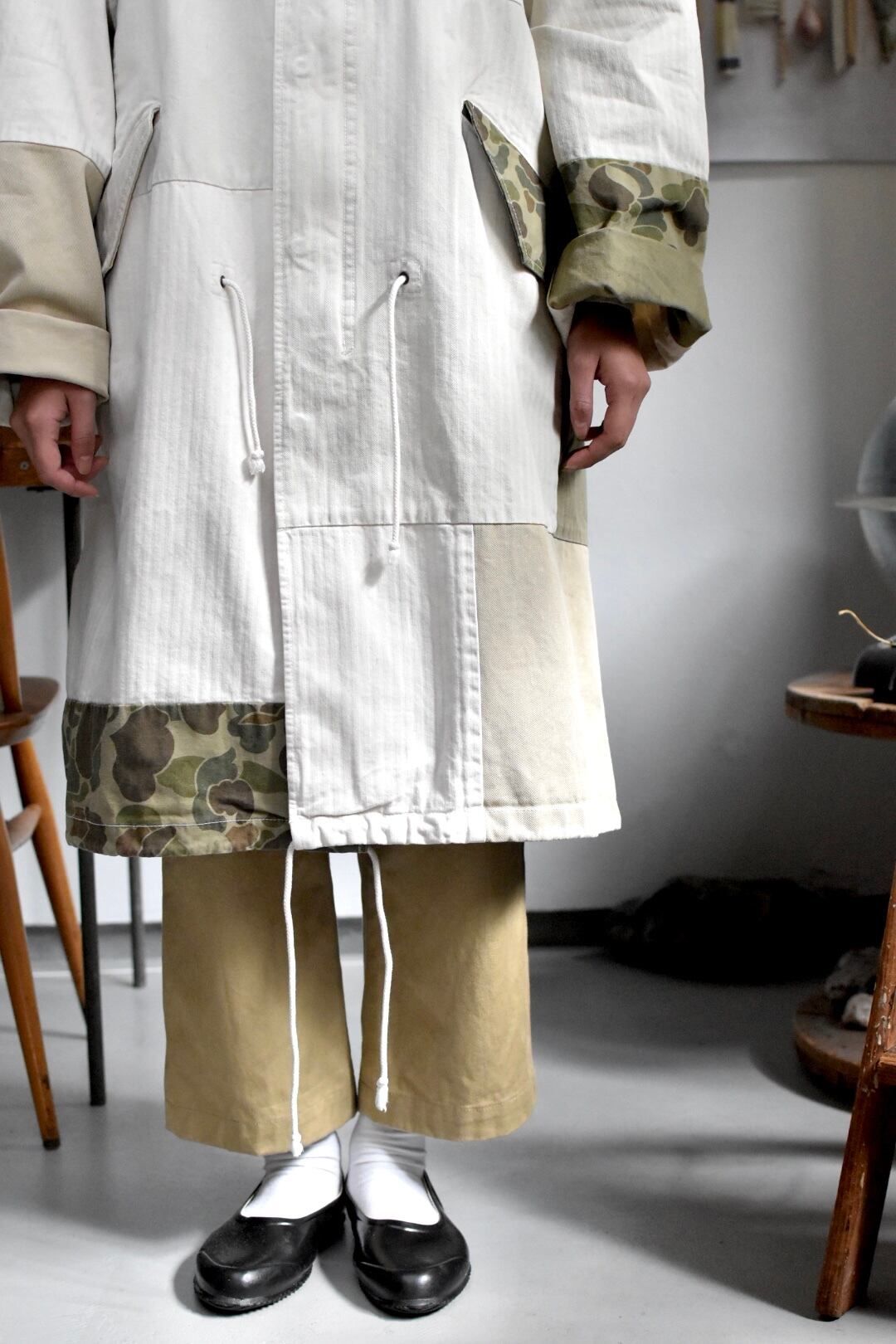なのでシルエットは通常のモッズコートよりゆったりしており、着丈も少し長めに設定しています。