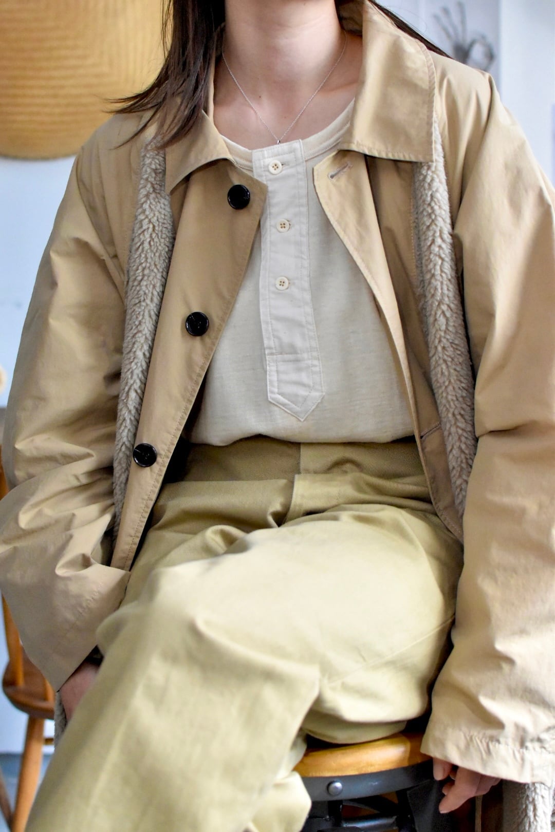 コートの下にライナージャケットを着てもかさばらないシルエットなので、真冬でも楽しんで頂けるアイテムとなっています。