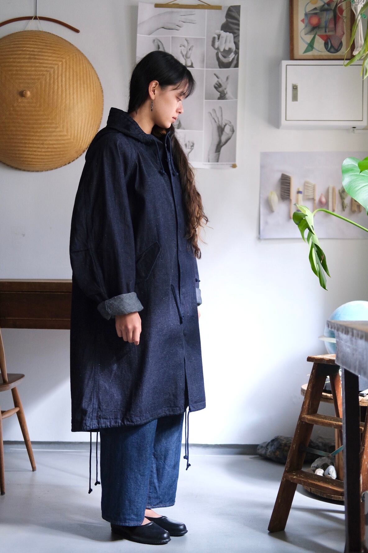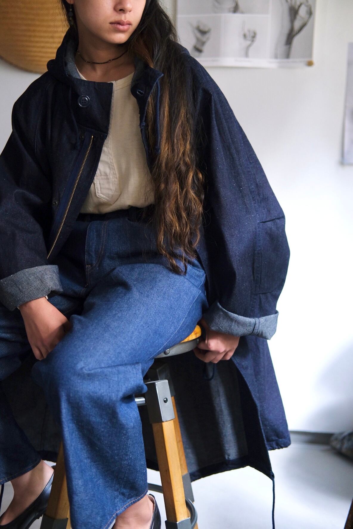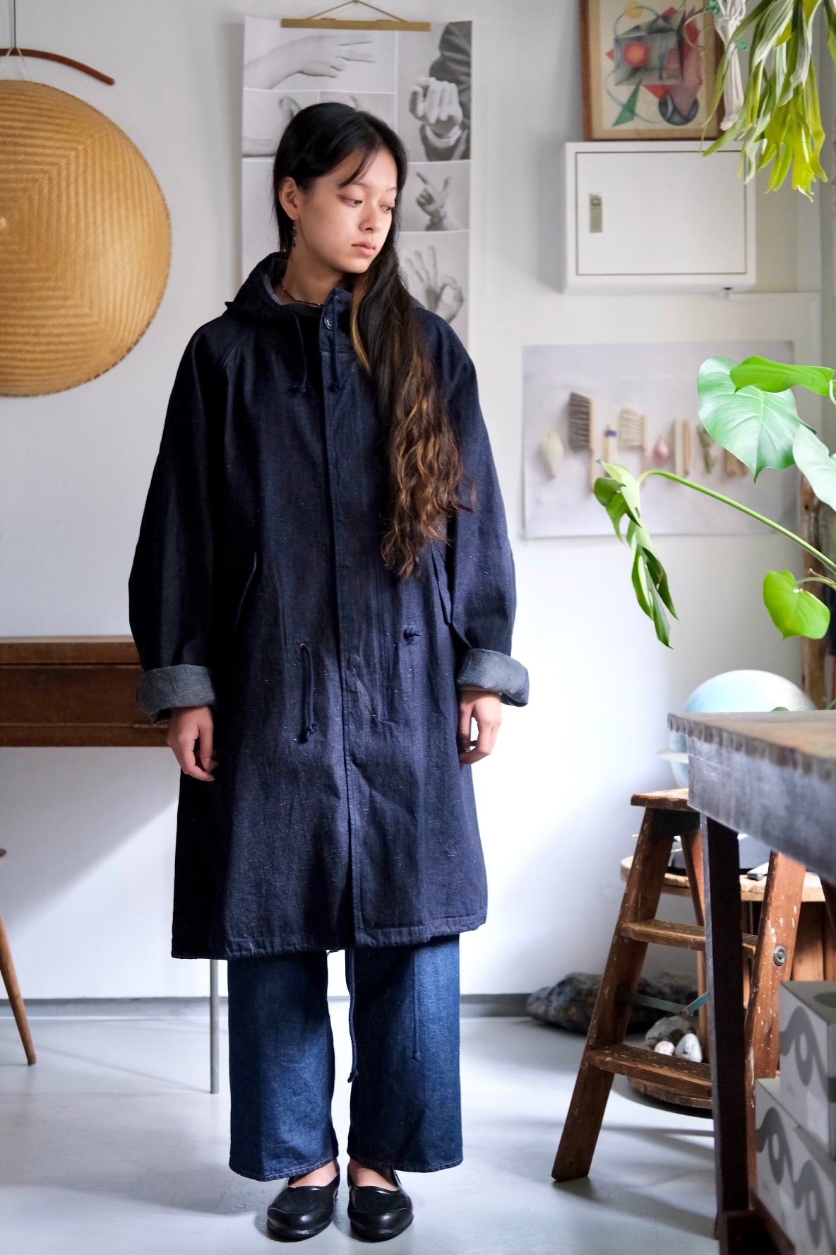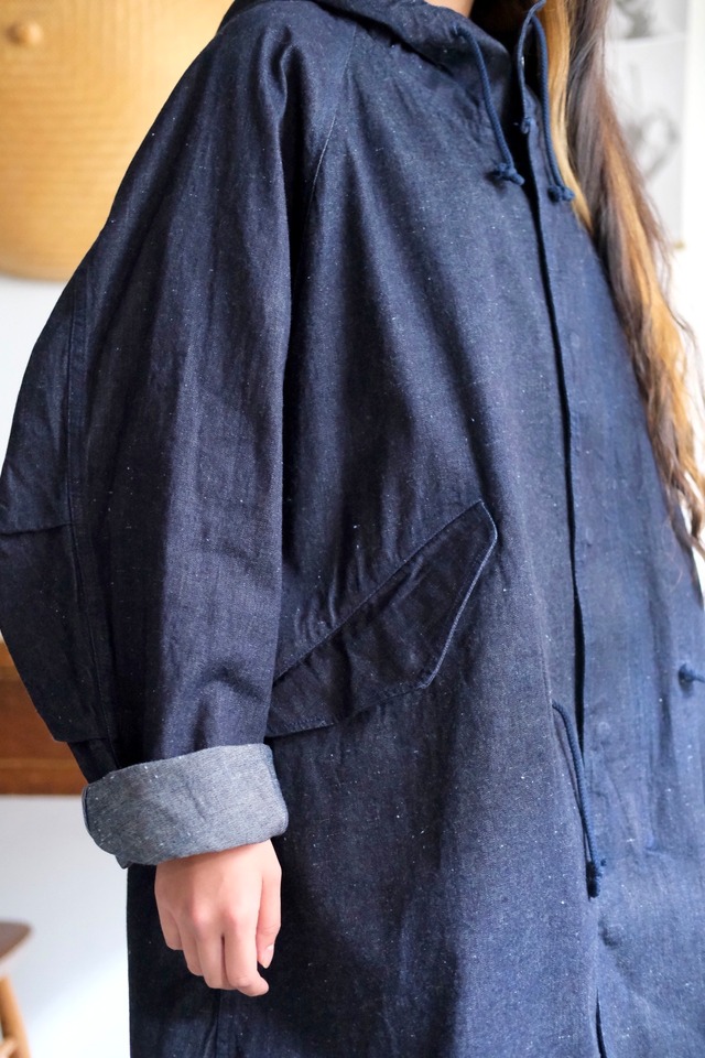 なのでシルエットは通常のモッズコートよりゆったりしており、着丈も少し長目に設定しています。