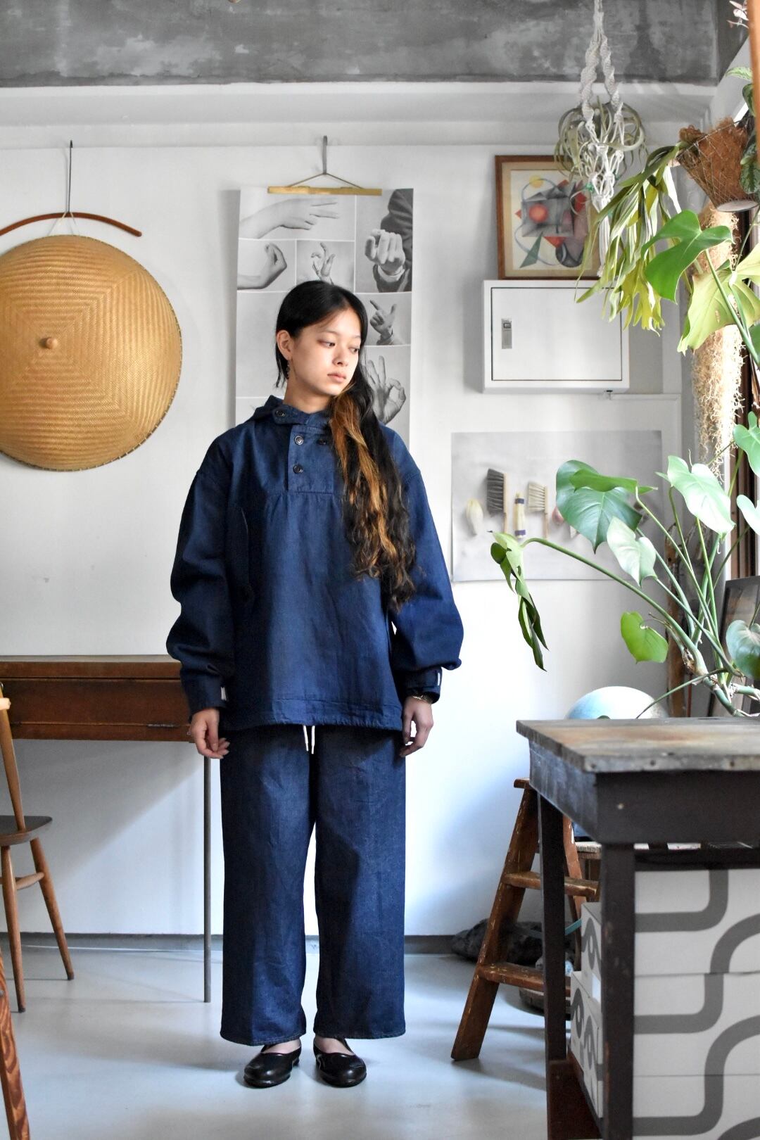 "H.UNIT" "Denim anorak hoodie"