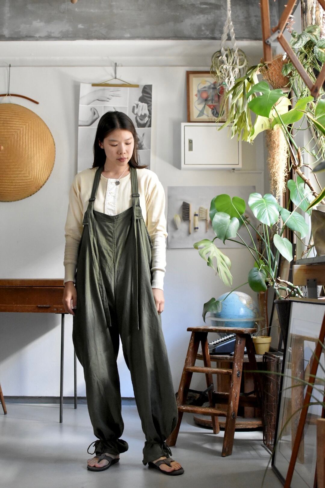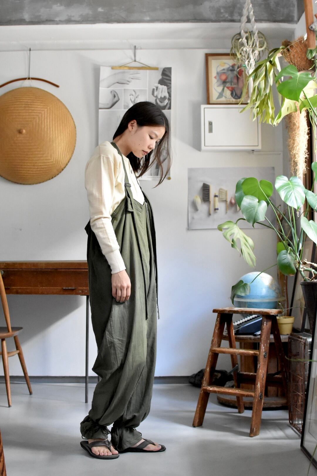 サスペンダーも長いので、写真のようにオーバーオール風にしても良いし、メンズはパンツとして穿いても良いかと。