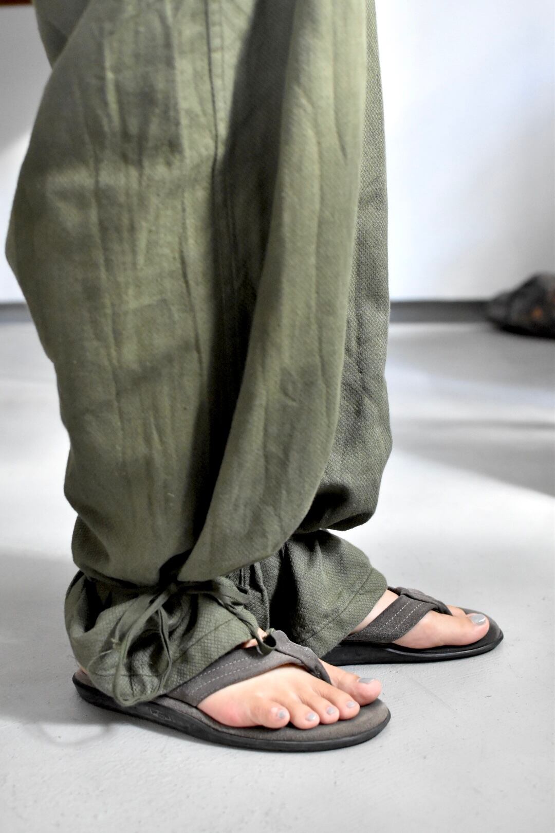 ジャケットは甚平のような変わったデザインで有名ですが、パンツは同素材のオーバーパンツ。