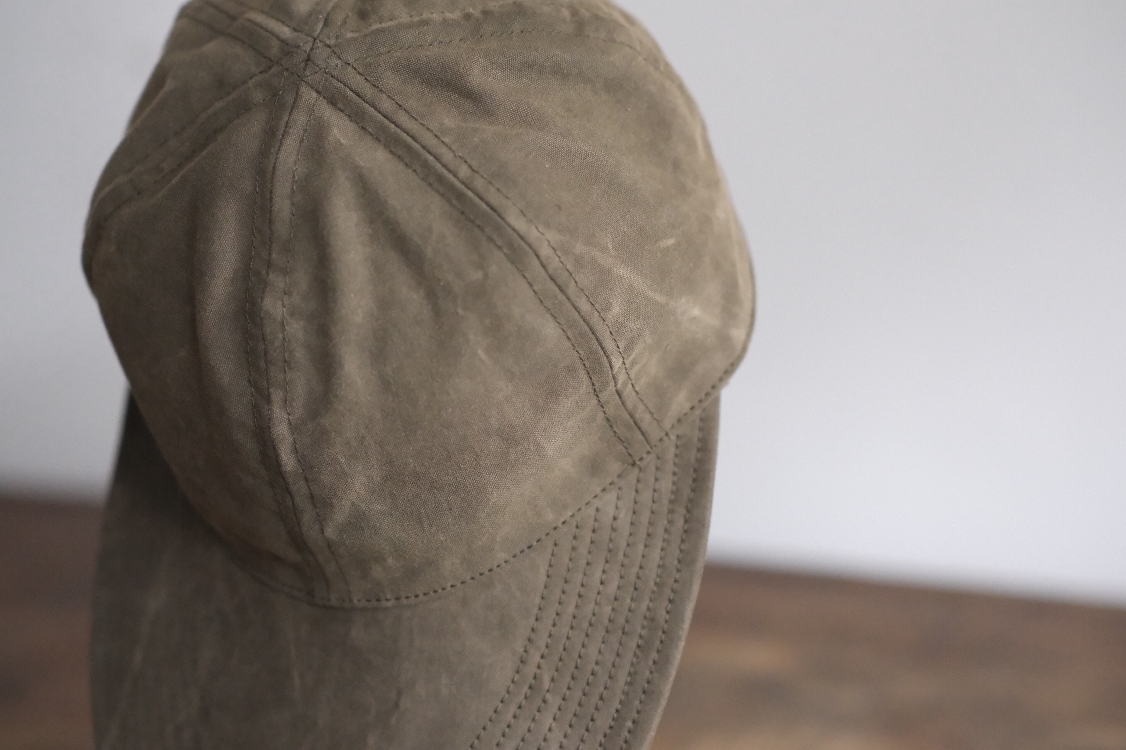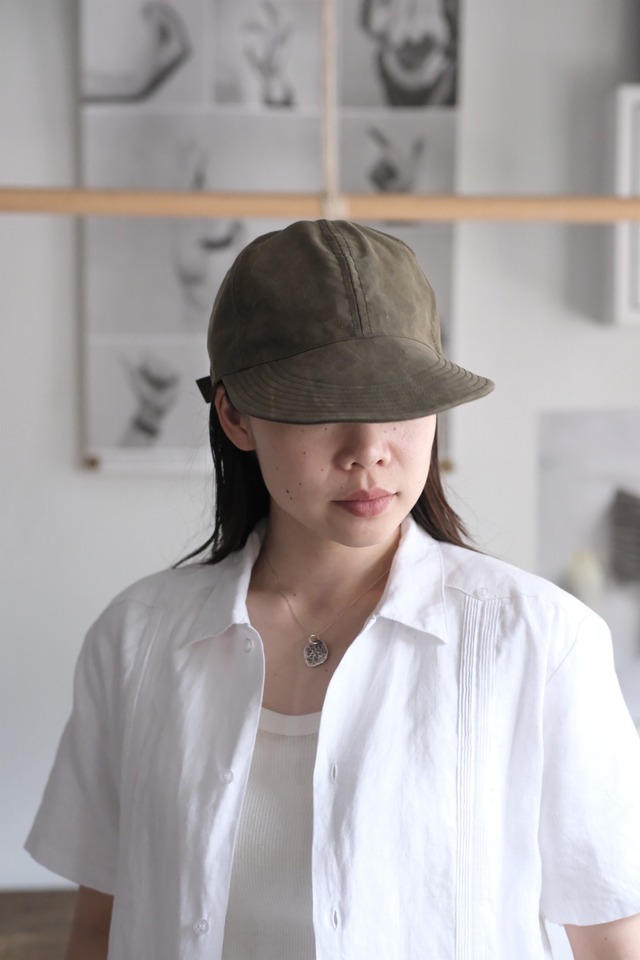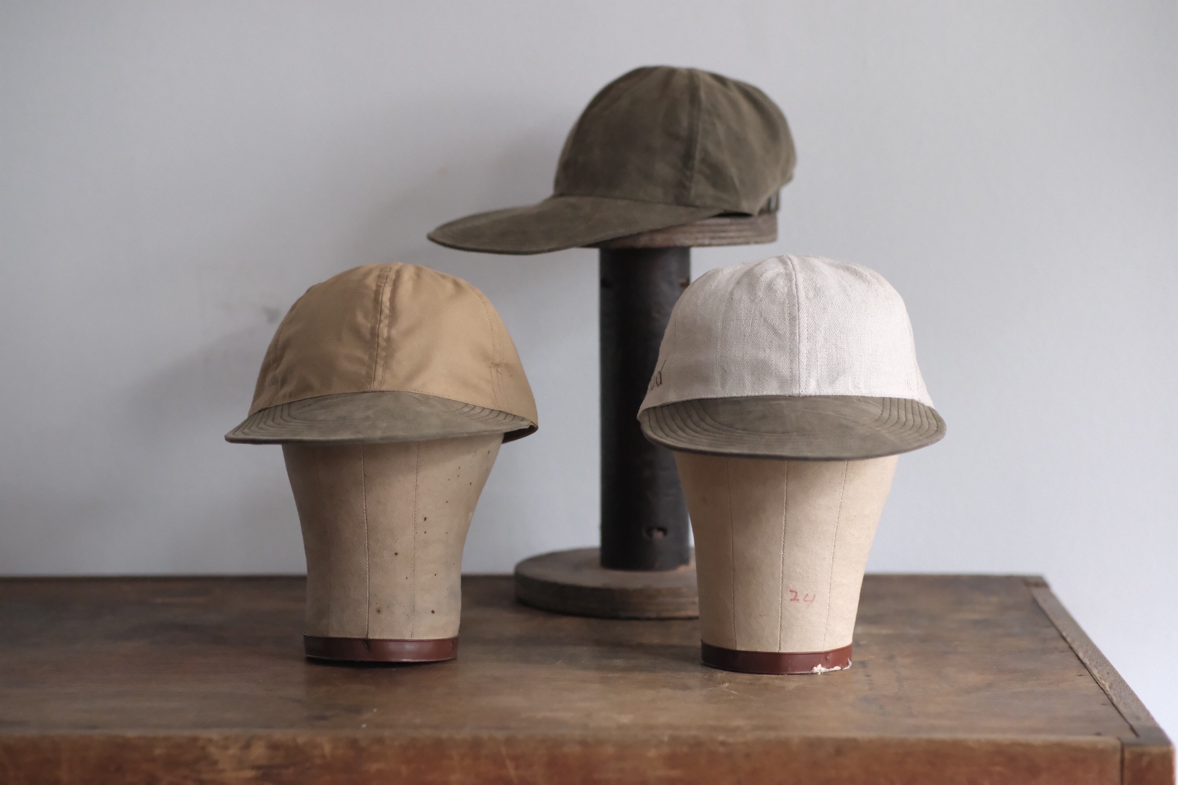 店主が昔買い付けた古いフィッシング用のロングビルキャップをサンプリング。