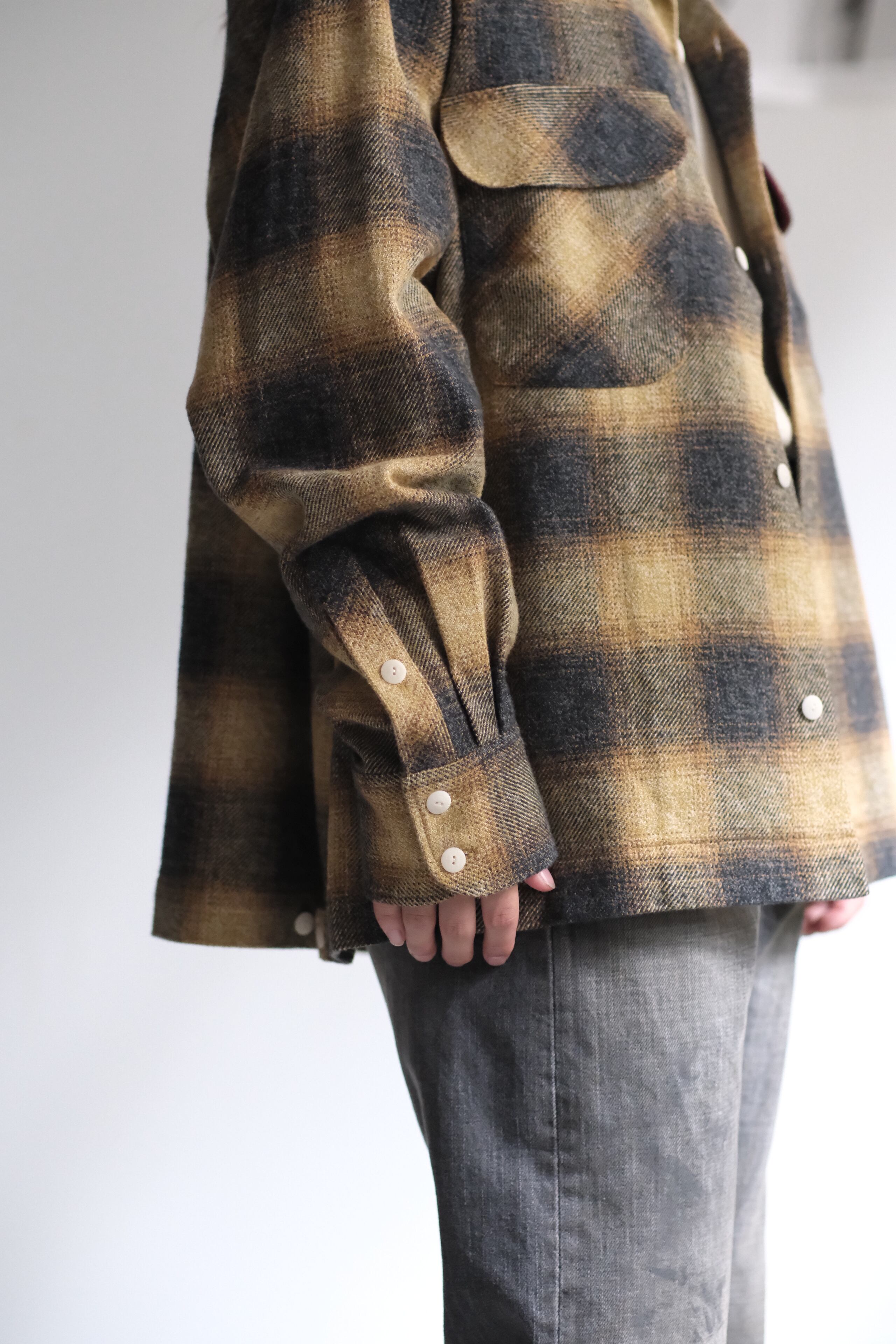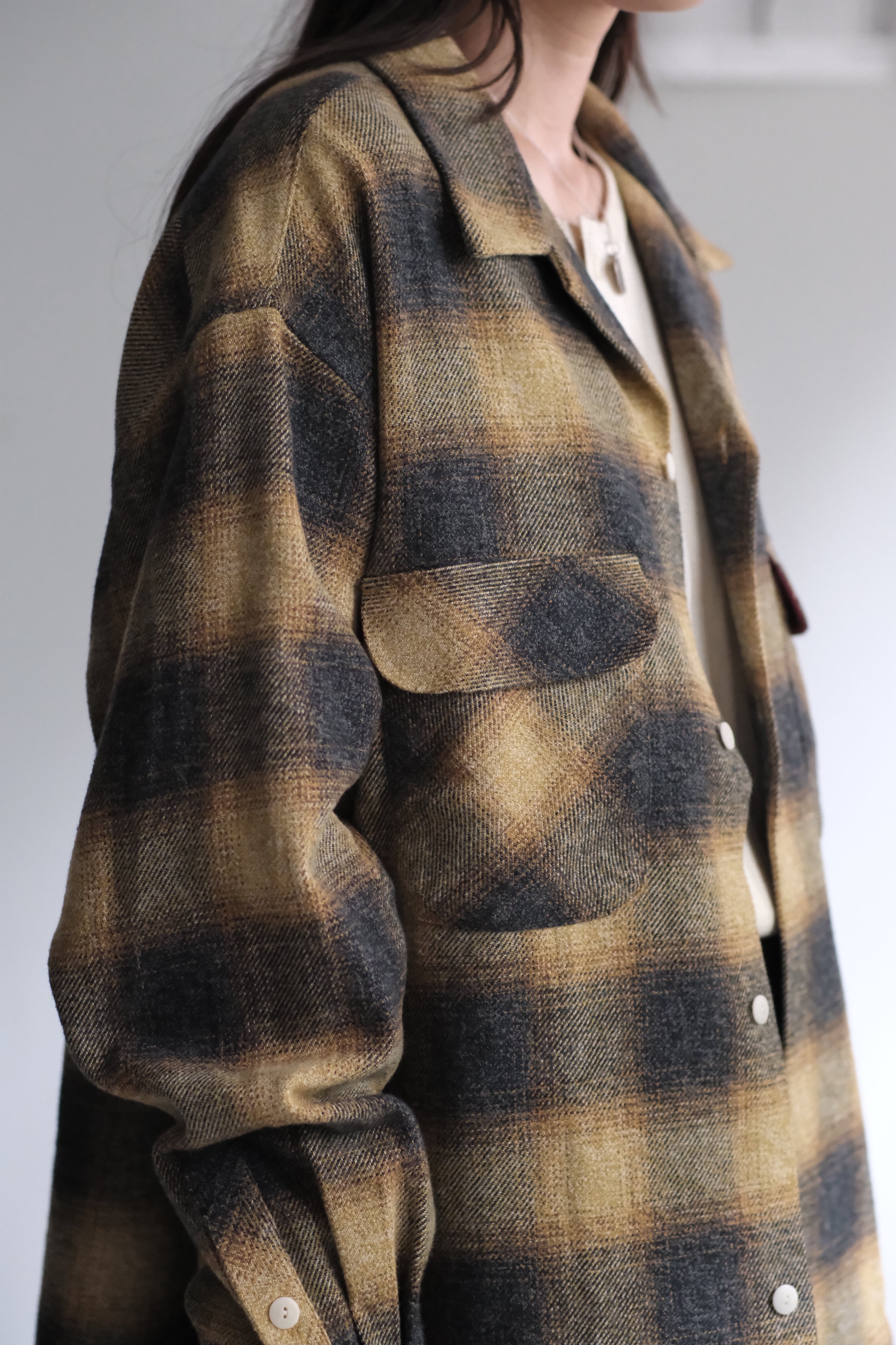 "H UNIT" "Ombre check open collar long sleeves shirt" (color) Beige/Mustard/Black