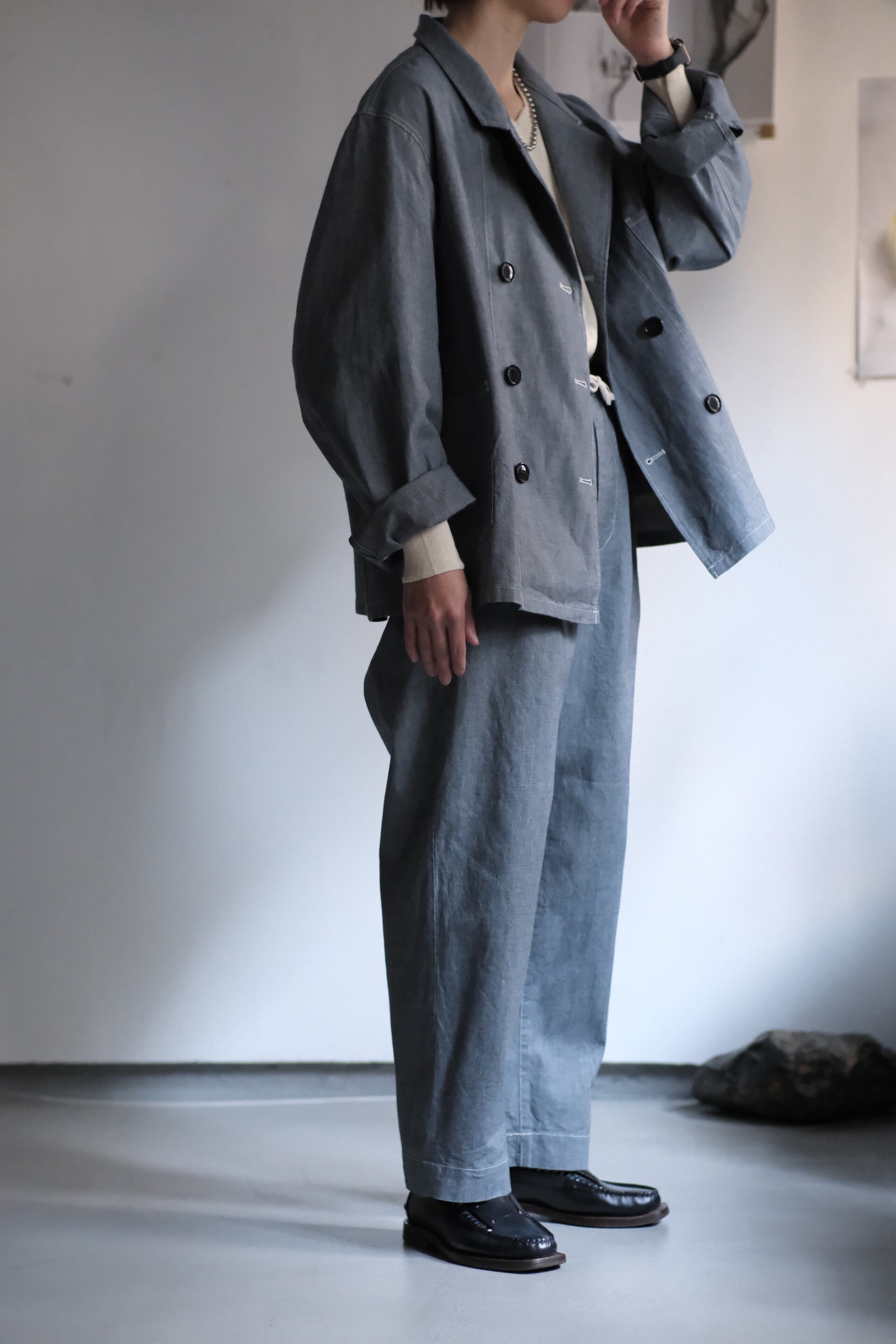 ハケメデニムとは平織りのデニムであり、刷毛で履いたかのように、表面にはさりげなく白糸が格子状に現れています。